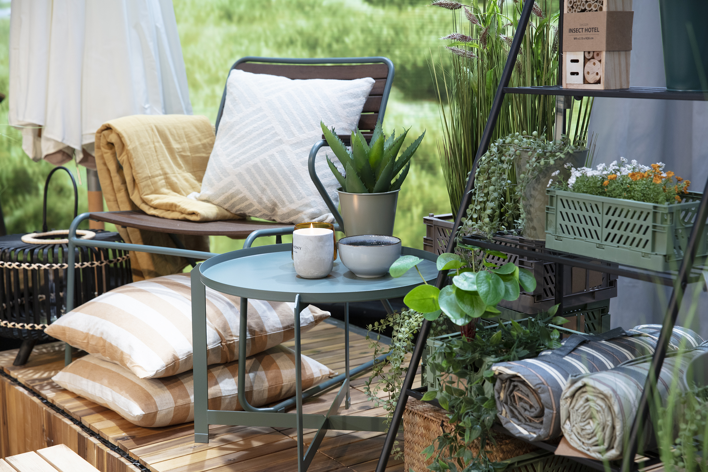 La nuova collezione di attrezzature per terrazze e balconi JYSK mette in risalto il legno, a cui viene conferita una forma più morbida e delicata grazie all'utilizzo di materiali riciclati. È riconoscibile la predominanza del lavoro manuale con una struttura pronunciata e un popolare aspetto artigianale in stile scandinavo.