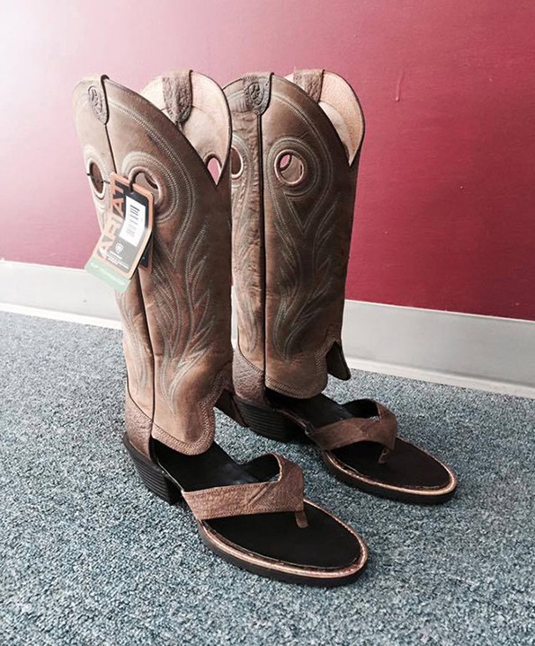 Iz improvizirane različice je tako hitro zraslo podjetje Redneck Cowboy Boots, ki danes kavbojske čevlje v kavbojske sandale predeluje za 50 euro.