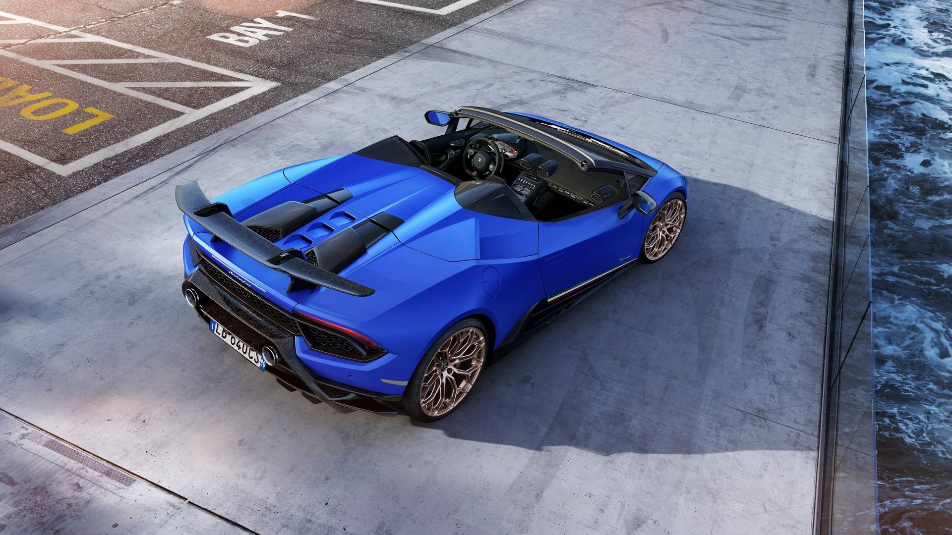 Il tetto in tessuto della Lamborghini Huracan Performante Spyder può aprire o chiudere ad una velocità fino a 50 km/he l'intero processo richiede solo 17 secondi. Ha ottenuto uno Spyder per ridurre la turbolenza con il tetto aperto fessure aggiuntive per il flusso d'aria, e per ridurre il rumore nella cabina che ha a disposizione protezione dal vento rimovibile. Come la versione coupé, la Huracana Spyder è alimentata da un motore ispirato all'atmosfera Motore 10 cilindri a V da 5,2 litri con 640 cavalli e 600 Nm di coppia. Ha bisogno solo di 0-100 km/h 3,1 secondi e 9,3 secondi per l'accelerazione da 0 a 200 km/h prima di raggiungere la velocità massima di 325 chilometri all'ora. I primi acquirenti potranno guidare la più tossica Huracan già quest'estate e se lo inventeranno in una combinazione blu-giallo, come abbiamo ammirato a Ginevra, sarà davvero una gioia per gli occhi e una piacevole aggiunta all'estate.