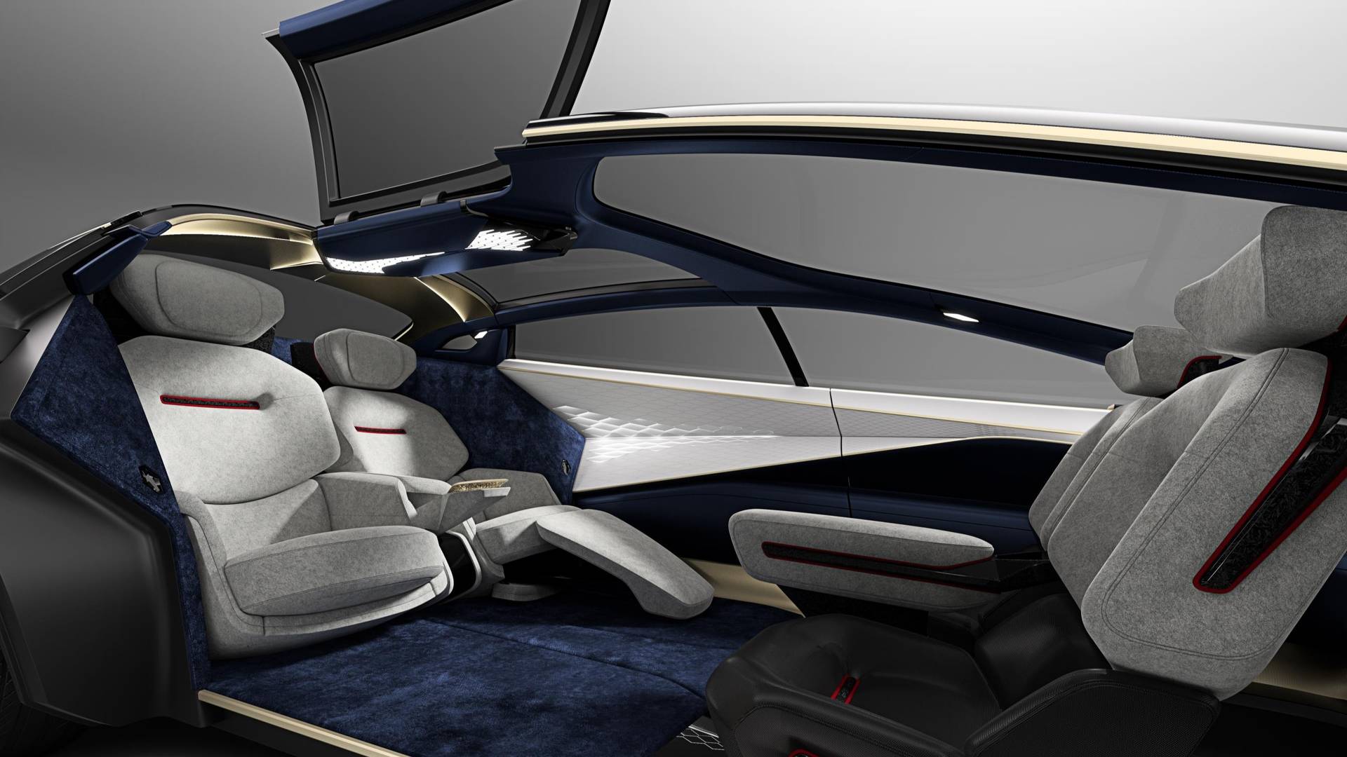 Reichman e il suo team hanno collaborato con un designer di mobili inglese per progettare gli interni del concept David Linley. Gli interni sono stati progettati dall'interno perché si voleva davvero sfruttare la libertà di progettazione. Sono interessanti porta del concetto, che si aprono verso l'alto e verso l'esterno, aprendo anche parte del tetto. Pertanto, i passeggeri possono entrare e uscire dall'auto senza ostacoli. I sedili sono posizionati ai lati dell'interno e non sul pavimento, come avviene attualmente. Tutto questo semplicemente perché abbiamo uno spazio libero sul pavimento. Il volante può essere spostato sul lato sinistro o destro dell'auto, ma quando il Lagonda v modalità di guida autonoma, il volante si sposta verso il cruscotto. Con una sola carica della batteria, il concept Aston Martin può trasportare 644 chilometri una lunga distanza.