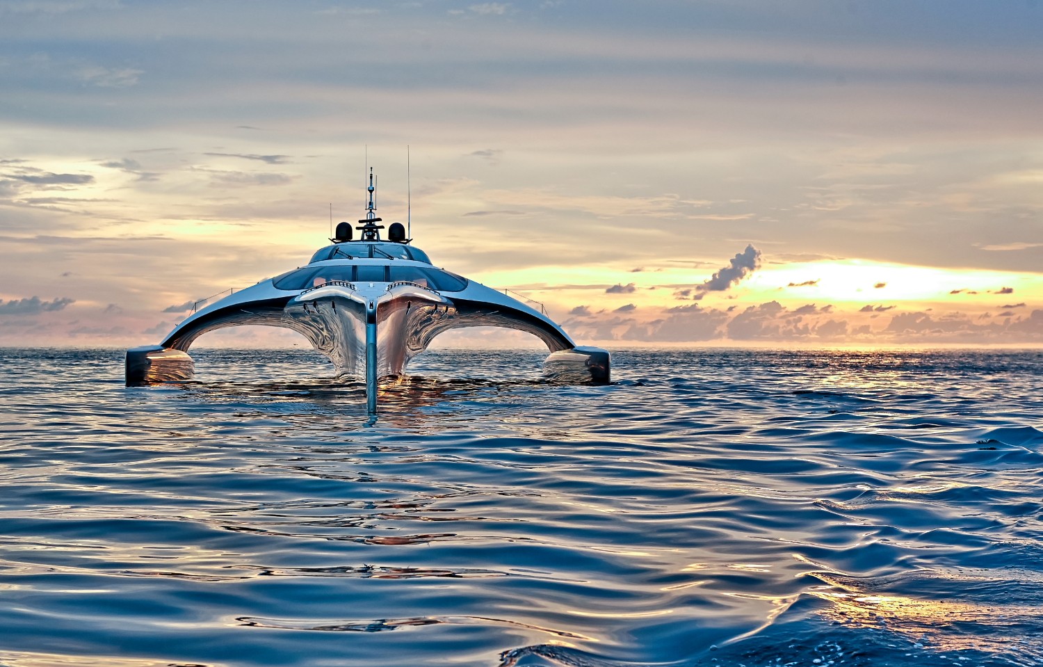 Nel 2012 è stato costruito in Cina uno straordinario trimarano lungo 42,5 m, chiamato Adastra. Un anno dopo, ha vinto il premio per il miglior design di "yacht" 2013. aspetto e dati "tecnici".