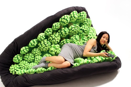 La particolarità del divano è la sua superficie cosparso di materiale morbido a forma di fiori, che fungono da cuscini in cui affonda il corpo. Puoi sederti, oppure puoi poltrona semicircolare trasformarsi nell'angolo relax per eccellenza.