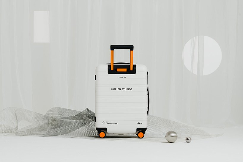 Kovček, ki je izdelan iz polikarbonatne lupine, je povečini obarvan bianco, ustvarjalci pa so ga v nekaterih predelih okrasili z arancia E blu barvo. Vanj je vgrajen pametni polnilnik, uporabnike pa bodo navdušila tudi štiri 360-stopinjska kolesa.
