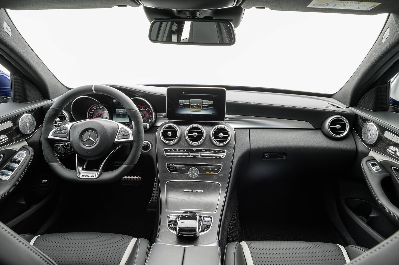In entrambi i casi, in modo significativo più di quanto possa gestire il biturbo in linea a sei cilindri da 3,0 litri della BMW motore nella M3, che è capace di 317 kW o 431 CV. In entrambi i casi la trasmissione della potenza alla strada sarà assicurata da cambio automatico AMG Speedshift MCT a sette velocità, con un programma di commutazione manuale e con funzione Race Start. Parte dell'equipaggiamento standard sarà 18- o presso “eSu” Cerchi da 19 pollici (con dimensioni degli pneumatici 245/40 R18 e 265/40 R18 oppure 245/35 R19 e 265/35 R 19). Rispetto agli altri C, saranno più potente Anche Freni i cui dischi misureranno 360×36 mm all’anteriore e 330×26 mm al posteriore, mentre la eS avrà dischi con diametro di 390 o 360 millimetri.