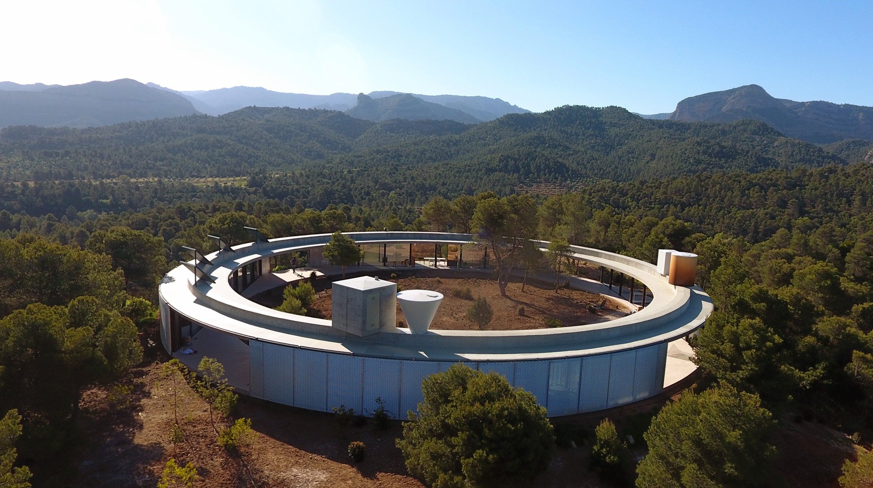 V impresivni španski pokrajini Matarrana è belgijski arhitekturni biro zasnoval hišo, ki se zlije z okolico in poudari njene naravne lepote. Zaradi izjemno lepe pokrajine s srednjeveškimi vasmi, kristalnimi rekami in oljkami zelo spominja na italijansko Toskano. Na vrhu planote, ki ima razgled na Sredozemsko morje, je krožna streha s premerom 40 metrov. Streho podpirajo štiri ovalne stene. Zunanjo stan okrogle hiše je mogoče z zaveso zastreti in preprečiti radovedne poglede. Notranjost je prav tako razdeljena na štiri dele: bivalni del, zasebni del, del za goste in bazen. V notranjem okroglem atrijskem dvorišču je velik vrt.