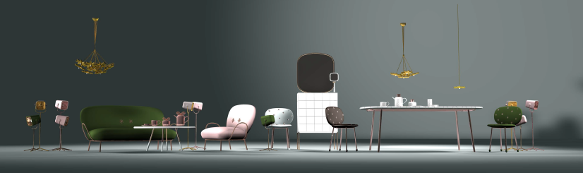 Le tazze, i piattini, la teiera, la zuccheriera e la lattiera, che sono già in fase di prototipo, combinano bianco, rosa cipria e cromo e hanno un aspetto carino e sofisticato. Una collezione presto saranno completati da sedie, lampade, un tavolo e una cassettiera, tutti i pezzi rifletteranno senza dubbio la lungimiranza, la perfezione e l'attenzione ai dettagli del design di Nika. Con la collezione, Nika Zupanc vuole consentire alle persone di fare del palcoscenico la loro casa, e loro stessi i registi delle loro vite.