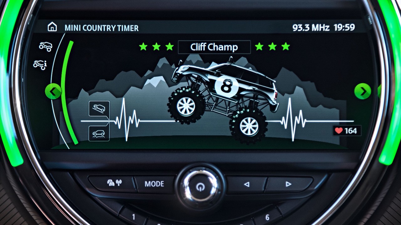 Novi Mini Coutryman ima višji položaj sedenja za še boljši pregled nad dogajanjem, hkrati pa to nudi večji užitek v vožnji. Zložljiva naslonjala zadnje klopi z možnostjo prilagajanja naklona (sedeže je moč vzdolž premikati za 13 centimetrov) omogočajo ločeno zlaganje v razmerju 40 : 20 : 40. Prostornina prtljažnika po novem znaša 450 litrov, razširimo pa se lahko vse do 1309 litrov, che è 220 litrov več kot do pri aktualnem modelu.
