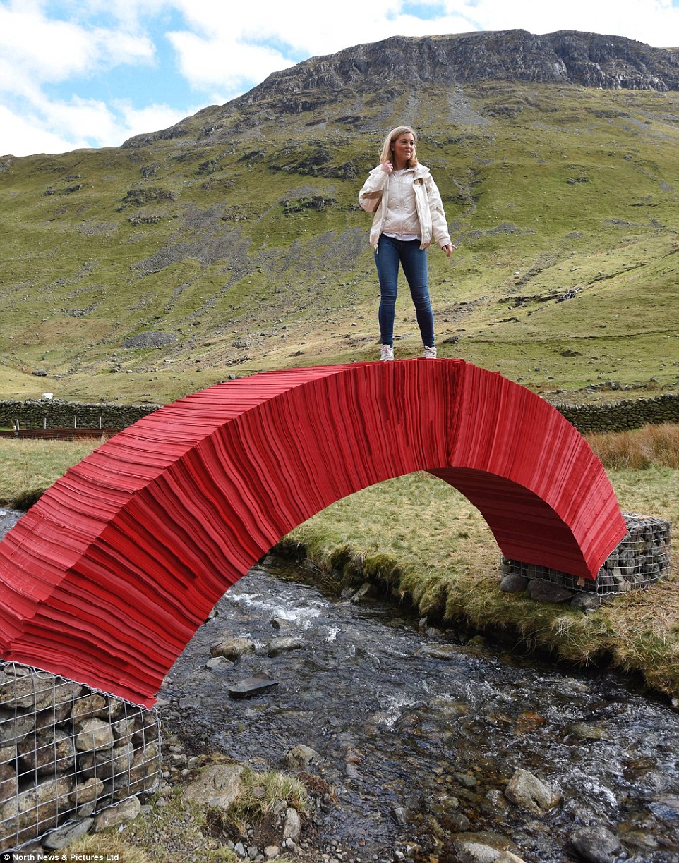 L'esclusivo ponte rosso PaperBridge, costruito nel Lake District in Inghilterra, è interamente realizzato in carta. Non aiuta con colla, viti o qualsiasi altro materiale. Si tratta di un progetto temporaneo, ideato da Steve Messam, a cavallo del fiume all'inizio della valle del Grisedale.