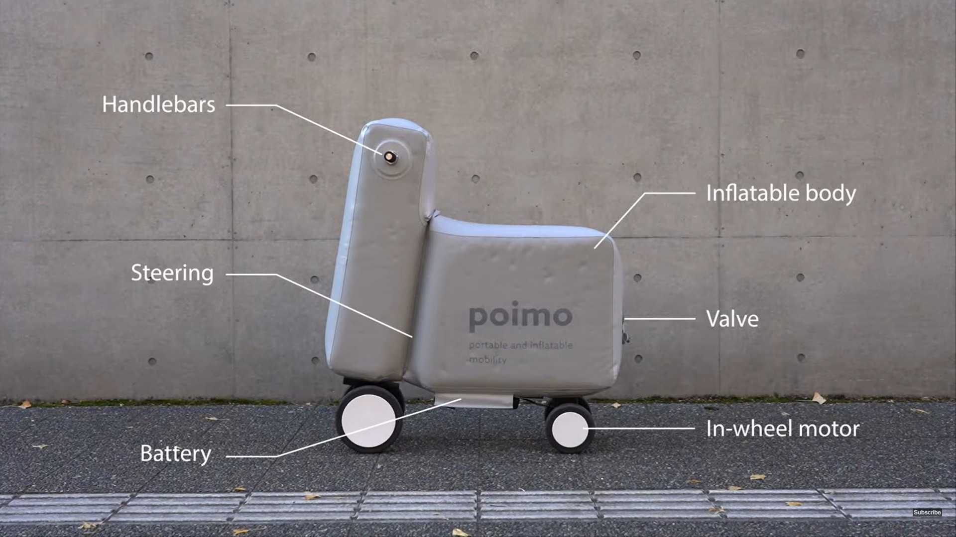 Sinonimo di mobilità portatile e gonfiabile, Poimo è un monopattino elettrico morbido e portatile che si gonfia ad aria.