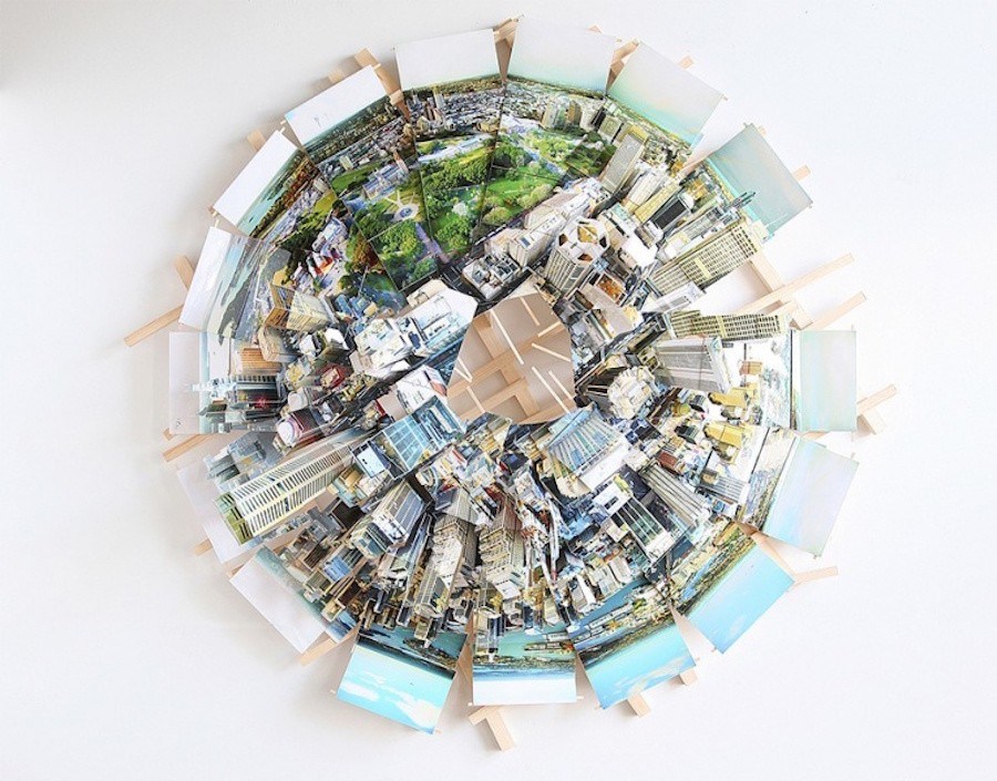 Isidro Blasco je iz številnih fotografij mest, kot so Sydney, Madrid, New York, Helsinki, Curitiba in Alicante, posnetih na različnih lokacijah, ustvaril nenavadne panoramske instalacije, lepljenke prizorov, ki jih je moral za popolno panoramo posneti tudi na več kot 40 lokacijah.