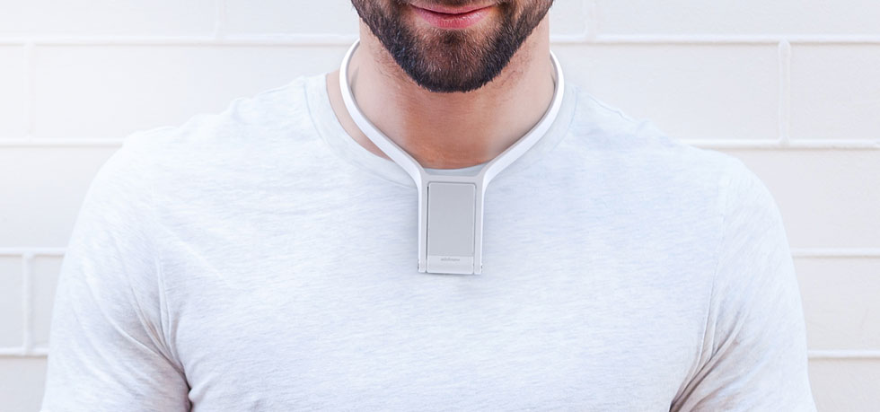 Lui dice è supporto per telefono aziende Edelcrown, che viene indossato al collo come una collana ed è per questo che il nome sta già prendendo piede collana per smartphone. Consente all'utente di registrare riprese in prima persona, affinché il mondo dia l'esempio telecamere sportive vediamo attraverso i suoi occhi e senza l'uso delle mani.