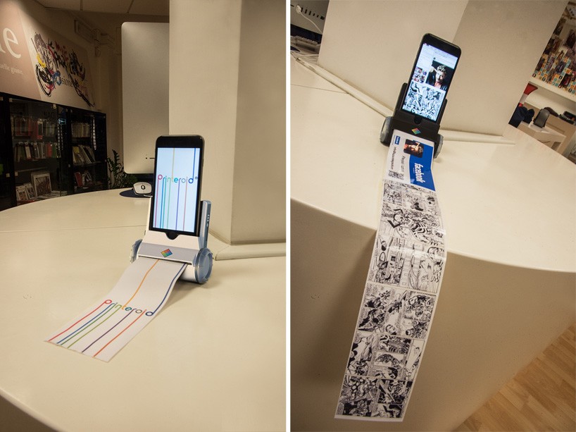 progettista Pierpaolo Lazzarini E Giampalo Scapigliati sta mnenja, da ljudje tudi v dobi, ko ni skoraj nič več natisnjenega, radi vidijo pravo fotografijo in jo uokvirjeno z veseljem obesijo na steno svojega doma. S tem v mislih sta oblikovala napravico, ki natisne fotografije, sporočila, vstopnice, vozovnice in še kaj, kar najdemo na svojem i phone mobilniku. Printeroid enostavno pritrdimo na prenosnik in prek aplikacije Printeroid Messaging Service na do deset metrov dolgo rolo papirja natisnemo karkoli želimo.