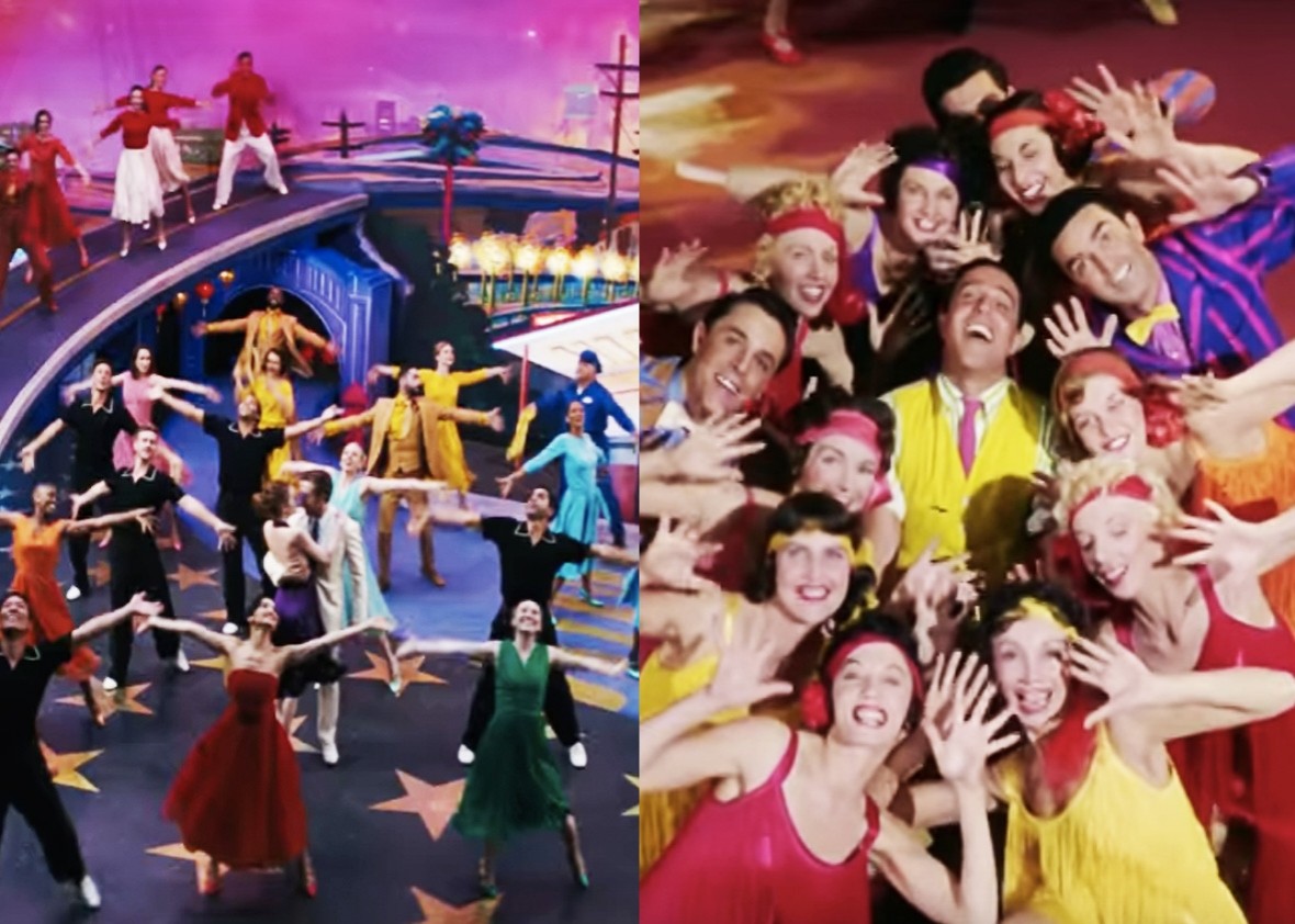 Alcune scene di La La Land ti sono sembrate sospettosamente familiari? La La Land demolisce tutto ciò che c'è davanti. Il musical romantico ha recentemente ricevuto un record di 14 nomination agli Oscar (solo Titanic e Eva contro Eva hanno ottenuto finora), e ancor prima ha portato a casa sette Golden Globe, il che fa ben sperare per gli Oscar. Se hai già visto il film e alcune scene ti sono familiari, non è un caso che i realizzatori abbiano tratto ispirazione da molti classici del cinema, come Balliamo sotto la pioggia e Moulin Rouge! e West Side Story. Guarda le scene che sono quasi una copia delle scene dei film citati.