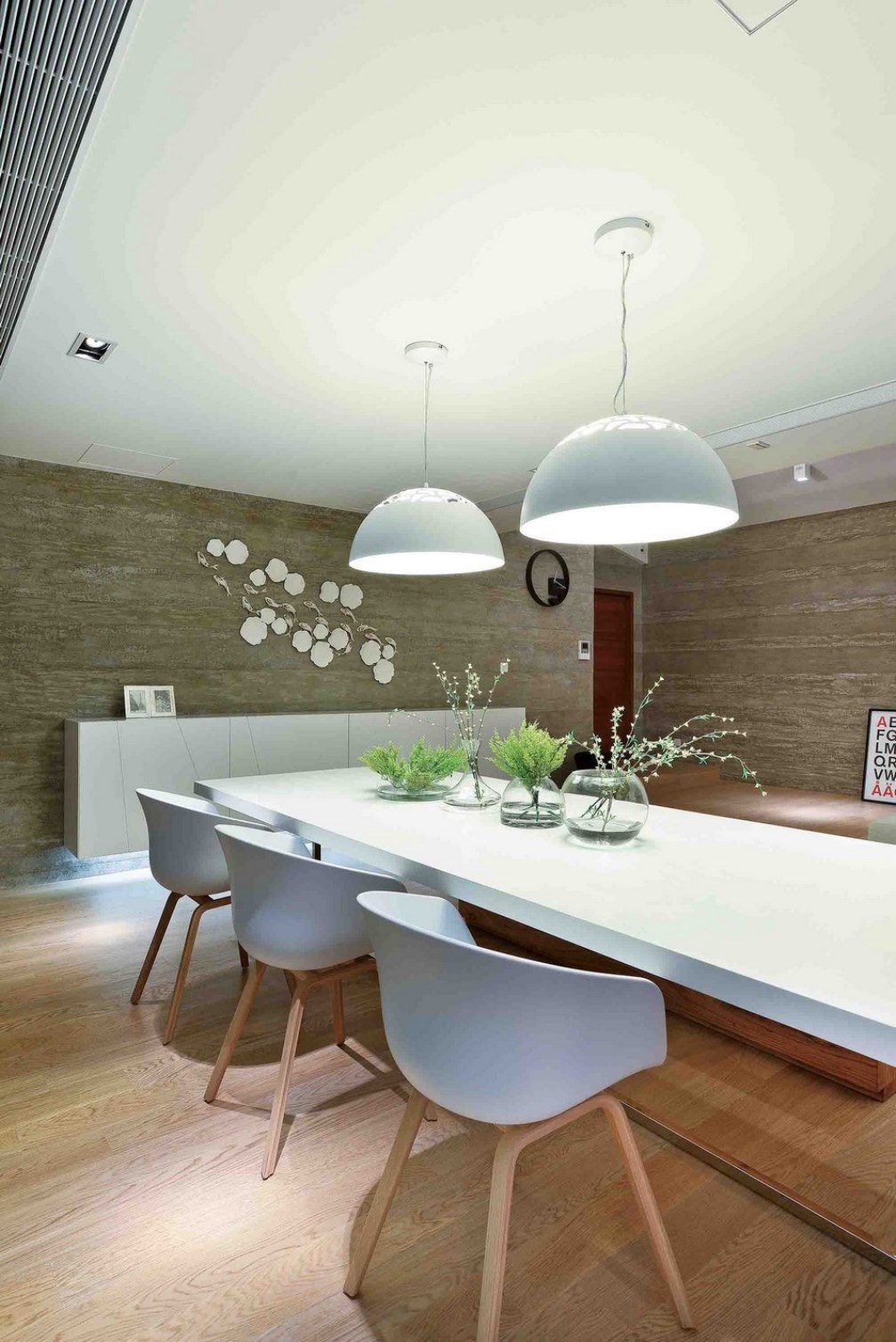Architetti di Millimetro Interior Design limitato sono le dimensioni della casa 474 mq completamente ristrutturato suddividendolo in due piani e un garage circondato da tubi luminosi a LED per un ulteriore effetto futuristico.