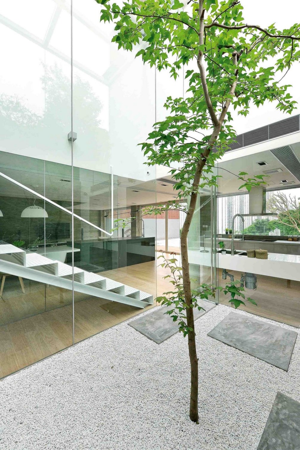 Al centro della casa è stato piantato un giovane acero, che riceve molta luce naturale grazie al tetto in vetro aperto direttamente sopra. C'erano enormi pannelli con celle solari installato sul tetto, fornendo a tutta la casa una fonte di energia naturale per l'illuminazione, lo scaldabagno e la batteria di riserva. Lo scopo dell'intera ristrutturazione era trasformare la casa da vecchia a nuova, stile urbano, pur mantenendo la costruzione originaria. Oggi che la consapevolezza ambientale e la responsabilità sociale sono diventate una tendenza, la sostenibilità delle case è considerata uno stile di vita alternativo per le nuove generazioni.