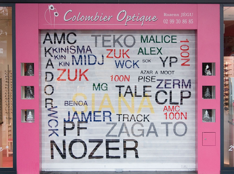 Tutti questi tipi di graffiti realizzati da artisti di graffiti che hanno tali calligrafia brutta e illeggibile come quella dei dottori, francese Mathieu Tremblin sostituite con iscrizioni leggibili.