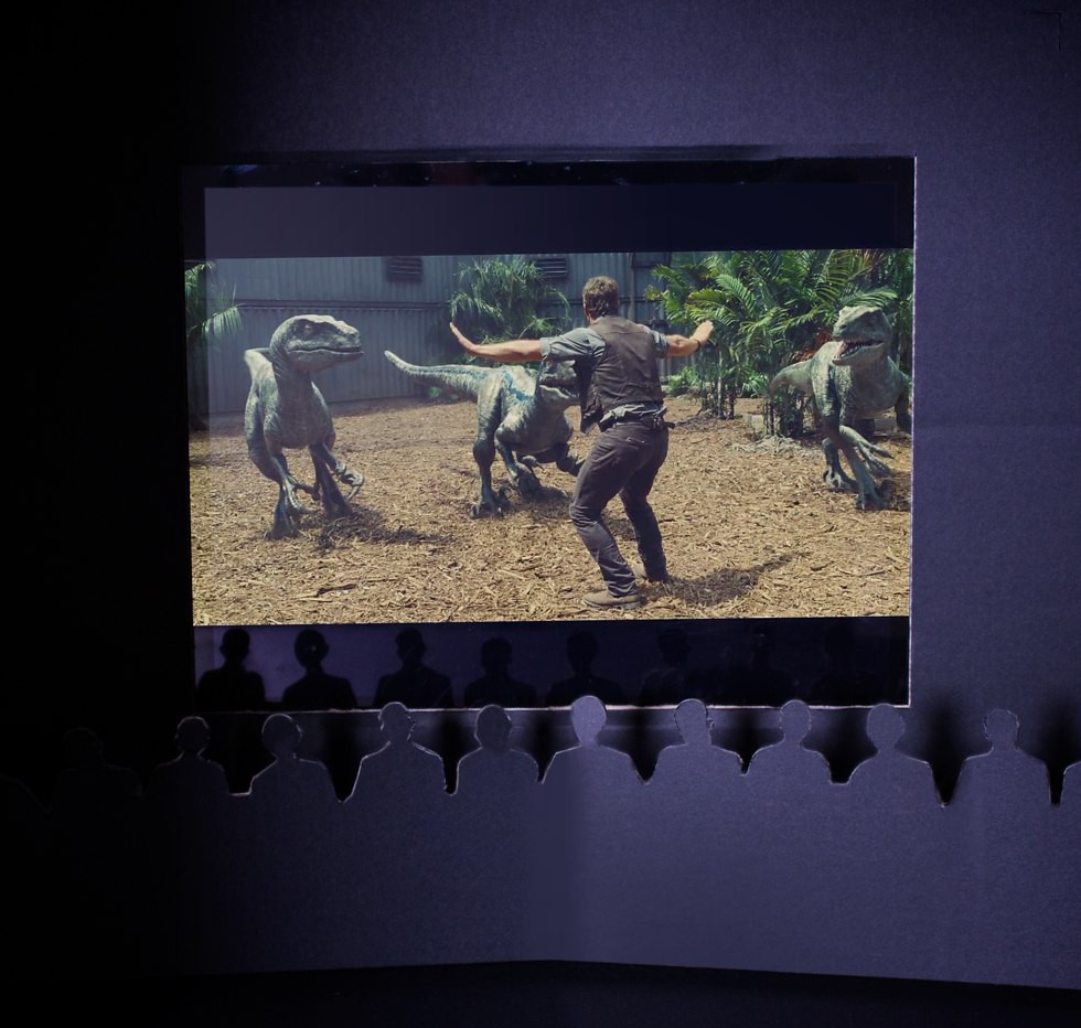 L'home cinema del Solo Theater è realizzato interamente in cartone e tu guardi il film si sdraia. Puoi anche scegliere la "fila" in cui vuoi sederti, poiché la profondità del box è regolabile. Inoltre, è disponibile il cartone con la sagoma degli spettatori, così non ti sembrerà di essere solo al cinema.