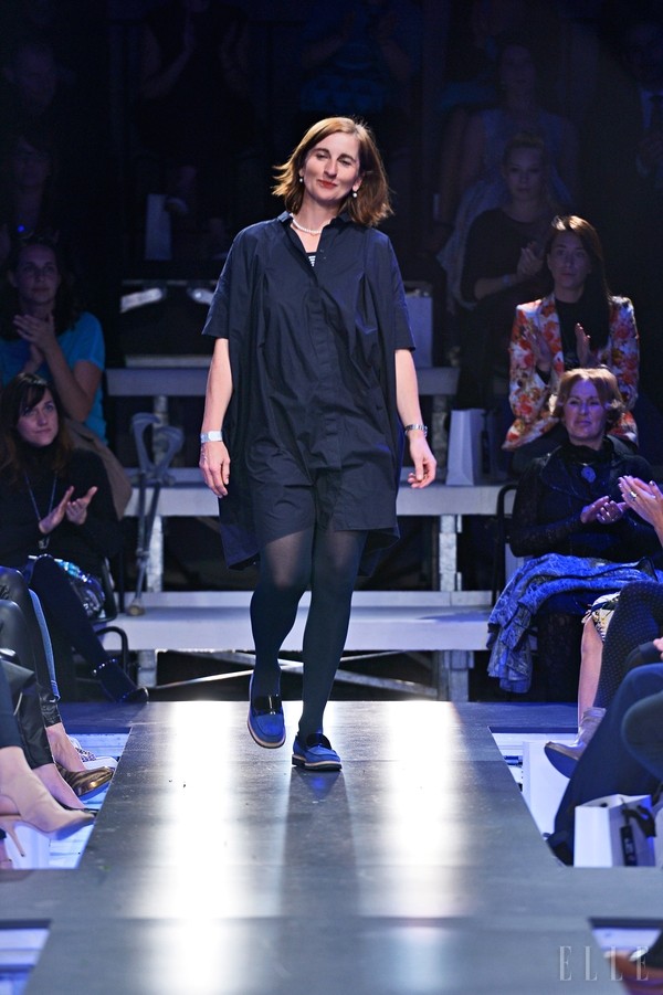 Il secondo giorno della settimana della moda di aprile Aquafresh, Almira Sadar ha presentato anche la sua collezione Shades of Blue durante la sfilata serale. Ha incantato con silhouette oversize e forme tridimensionali espressive, arricchite con bellissimi dettagli materici e collage e giocose "manette" intorno al collo.