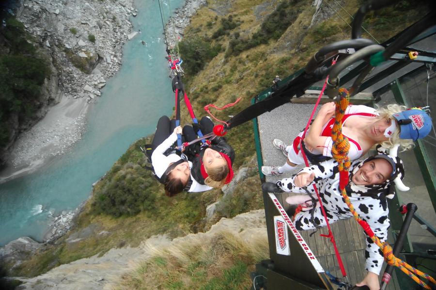 Gosti ga Queenstown, mesto z juga Nove Zelandije. Klif v višino meri slabih 110 metrov, padali oz. leteli pa boste s hitrostjo 145 chilometri all'ora. Preden se boste pognali v globino, vas bodo pripeli na 200-metrski kabel, ki vas bo zadržal ravno nad gladino reke Shotover. Skočite lahko na več različnih načinov, in sicer se lahko poženete po toboganu, se odpeljete z majhnim kolesom, vas nekdo potisne ali pa se usedete na tako imenovani ‘stol smrti’, kar pomeni, da sedite na plastičnem stolu, se ga primete in nato vas nekdo potisne čez rob platforme.
