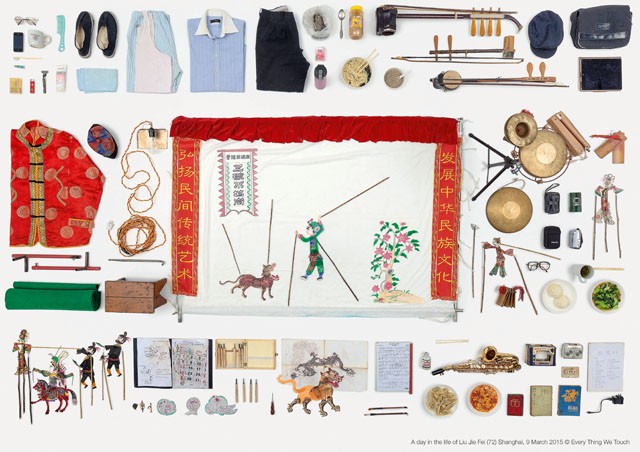 Numero stvari, ki se jih ljudje dotaknemo v 24 urah, je presenetljivo. Dokaz je delo umetnice Paule Zuccotti, ki je v svojem projektu Every Thing We Touch persone z različnih koncev sveta (od Melbourna do Madrida) prosila, naj si zapišejo stvari, ki se jih dotaknejo čez dan, potem pa je vse predmete zložila predse in zbirko fotografirala.