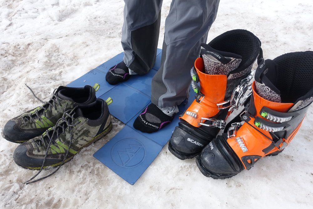 Fortunatamente, Ralph Kuhlmeier hanno inventato i cuscinetti Tappetino avventurache ti permette di cambiarti scarpe o vestiti ovunque senza dover lottare per mantenere l'equilibrio.