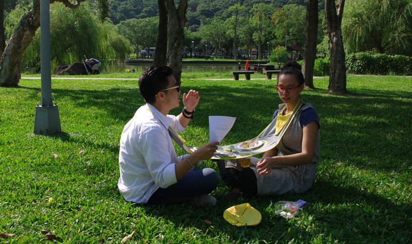 Tavolo dei tovaglioli rappresenta un nuovo concetto di nutrizione. Un caso di tavolo portatile per due designer industriali Hung Lu Chan, che hanno condotto ricerche il fenomeno della distrazione durante il pasto, che è cresciuto con l'avvento degli smartphone e dei tablet.