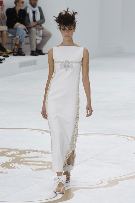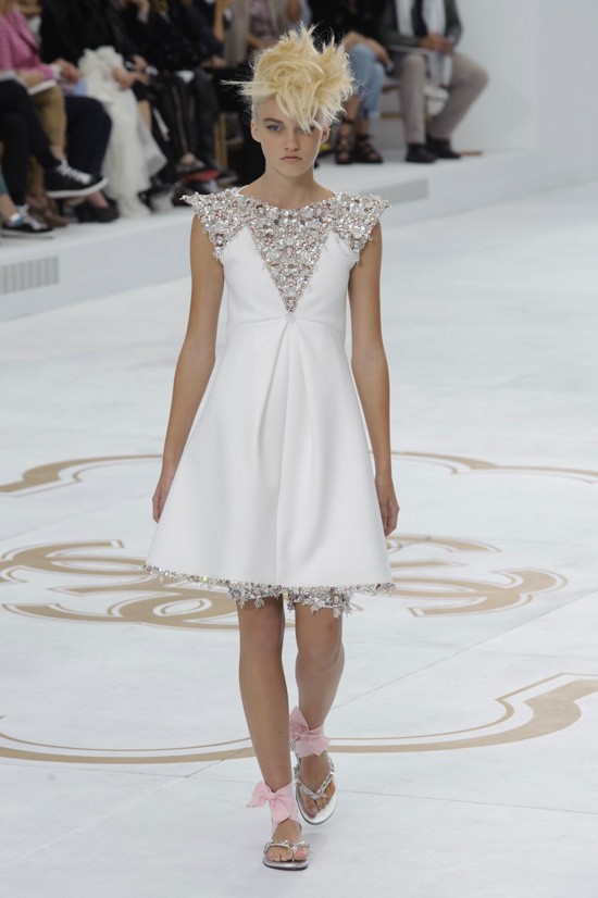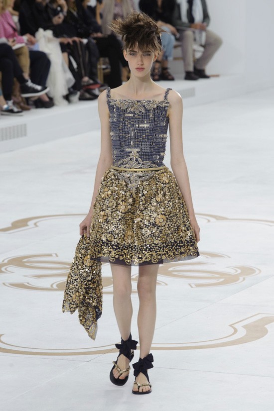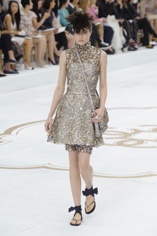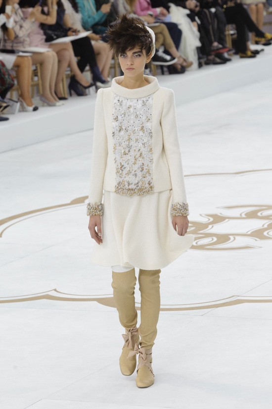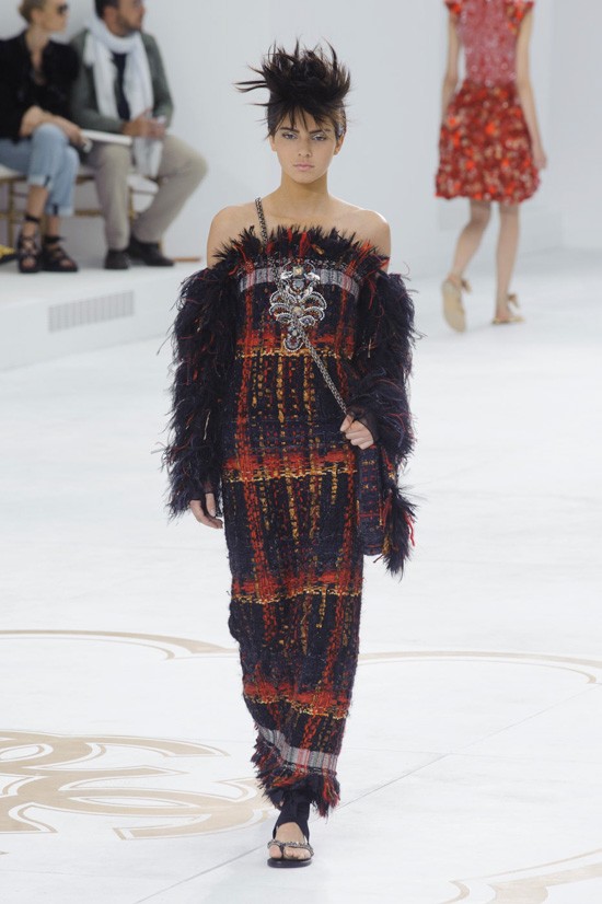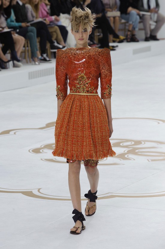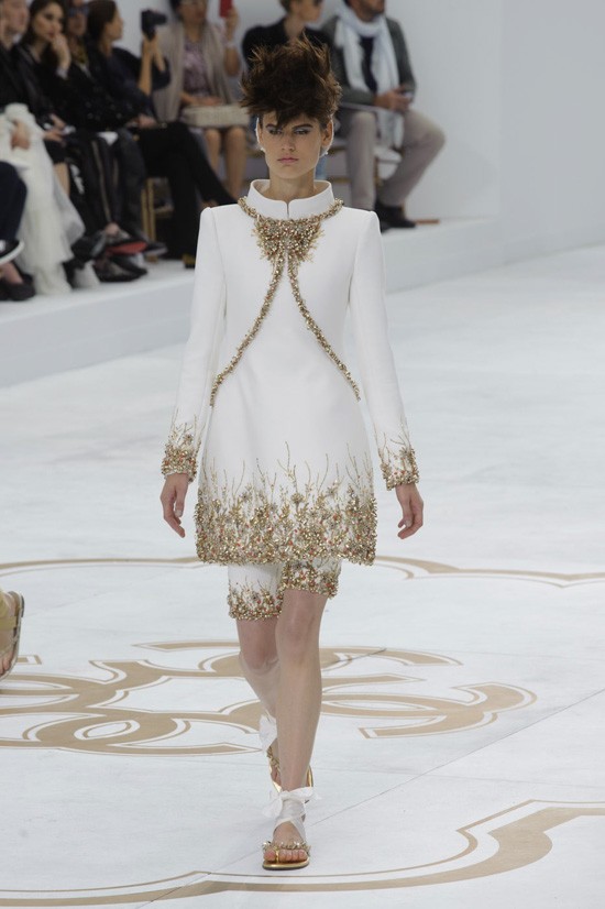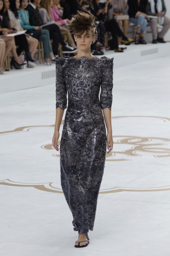 Karl Lagerfeld je inspiracijo za najnovejšo “haute couture” kolekcijo jesen-zima 2014/2015 poiskal pri znamenitem francoskem arhitektu, ki je navdihnil že mnoge – Le Corbusieru. Kolekcijo, ki jo je poimenoval “Le Corbusier gre v Versailles”, sestavljajo prestižni modni kosi, ki vsekakor odstopajo od kakršnegakoli minimalizma. Detajlirano okrašena oblačila, med katerimi seveda najdemo tudi nekaj tvidastih, navdušijo s precizno razporejenimi kristali, resami in perjem. Največ pozornosti pa so tokrat ukradli odlični nizki sandali, ki bodo naše gležnje ovili v razkošne pentlje. Čarobno!
