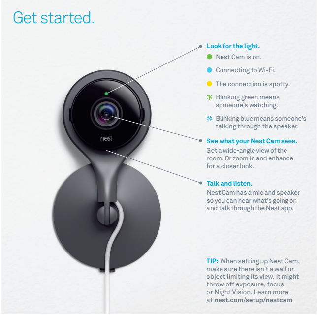 L'arrivo del dispositivo Nest Cam era un po' previsto, se ricordiamo che Nest, fondata da due ex dipendenti Apple, ha recentemente acquistato la società DropCam. Nest ha già controllato il termostato del riscaldamento domestico e rilevato fumo e monossido di carbonio, inoltre Nest Cam tiene d'occhio la casa come un cane da guardia. È una discendente diretta della fotocamera DropCam Pro, ma più sottile, con una risoluzione di 1080p (il predecessore era capace di 720p), con vista notturna e un servizio online che ti permette di seguire l'azione ovunque nel mondo.
