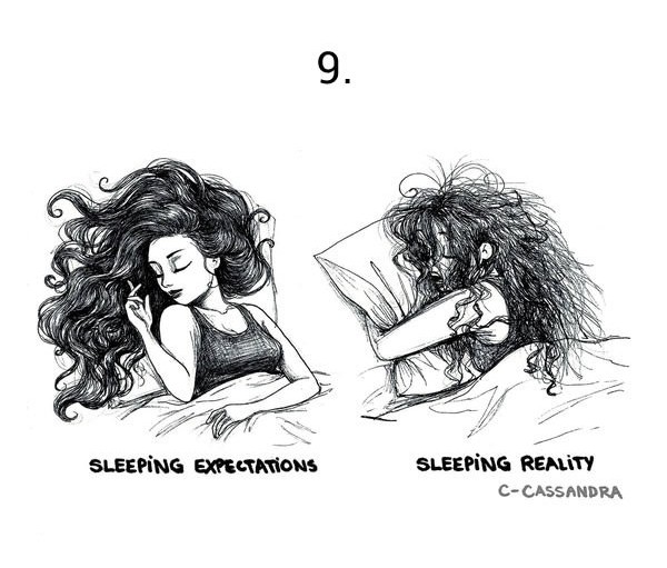 Katere so težave, s katerimi se vsak dan spoprijemajo dekleta z dolgimi lasmi, je z ilustracijami lepo ponazorila Cassandra Calin.