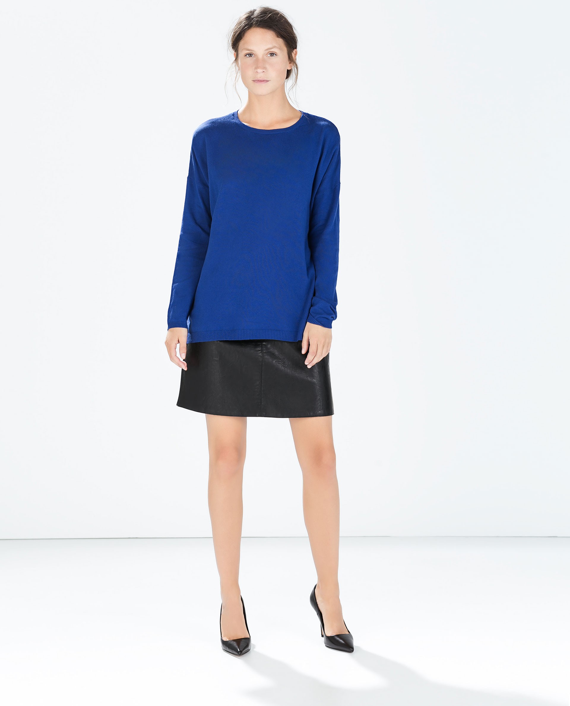 Ko smo razdelali za kakšen namen se bomo oblekli, lahko začnemo izbirati zgornji del. Praviloma je estetka in stilno varna izbira, ko kombiniramo po principu oprijeto-široko. Torej, če je krilo široko krojeno, posezimo po ozkem zgornjem delu in obratno. Za casual priložnosti svoj letošnji najljubši kos garderobe združimo z bombažnim t-shirtom, katerega lahko zataknemo v pas krila bodisi s fino ali široko, voluminozno pletenino. Za bolj fine priložnosti mu privoščimo družbo finega topa ali bluze, lahko tudi ozke, oprijete pletenine s puli ovratnikom. Ni komplicirano, kajne.