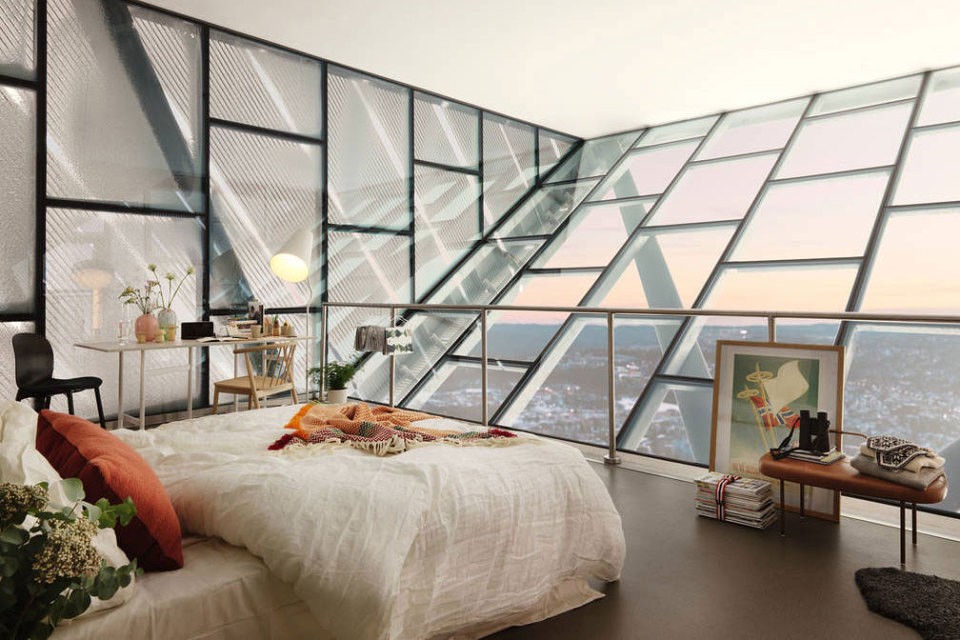 Il trampolino per il salto con gli sci di Holmenkollen, in Svezia, si erge a più di 60 metri dal suolo. Per alcuni, l'intimidatorio salto in alto è per altri una sfida progettuale e un posto da sogno dove trascorrere la notte. Presso il fornitore online Airbnb hanno recentemente pubblicato un notevole gioco a premi, il cui premio principale era un pernottamento in un attico di vetro in cima a un trampolino per il salto con gli sci. Gli interni, progettati dalle designer d'interni Melissa Hegge e Nina Holst, sono caratterizzati da un moderno design nordico, e l'appartamento colpisce anche per una terrazza privata dalla quale osservare Oslo e le stelle è semplicemente magico. Airbnb ha sconsigliato il concorso a chi soffre di vertigini...