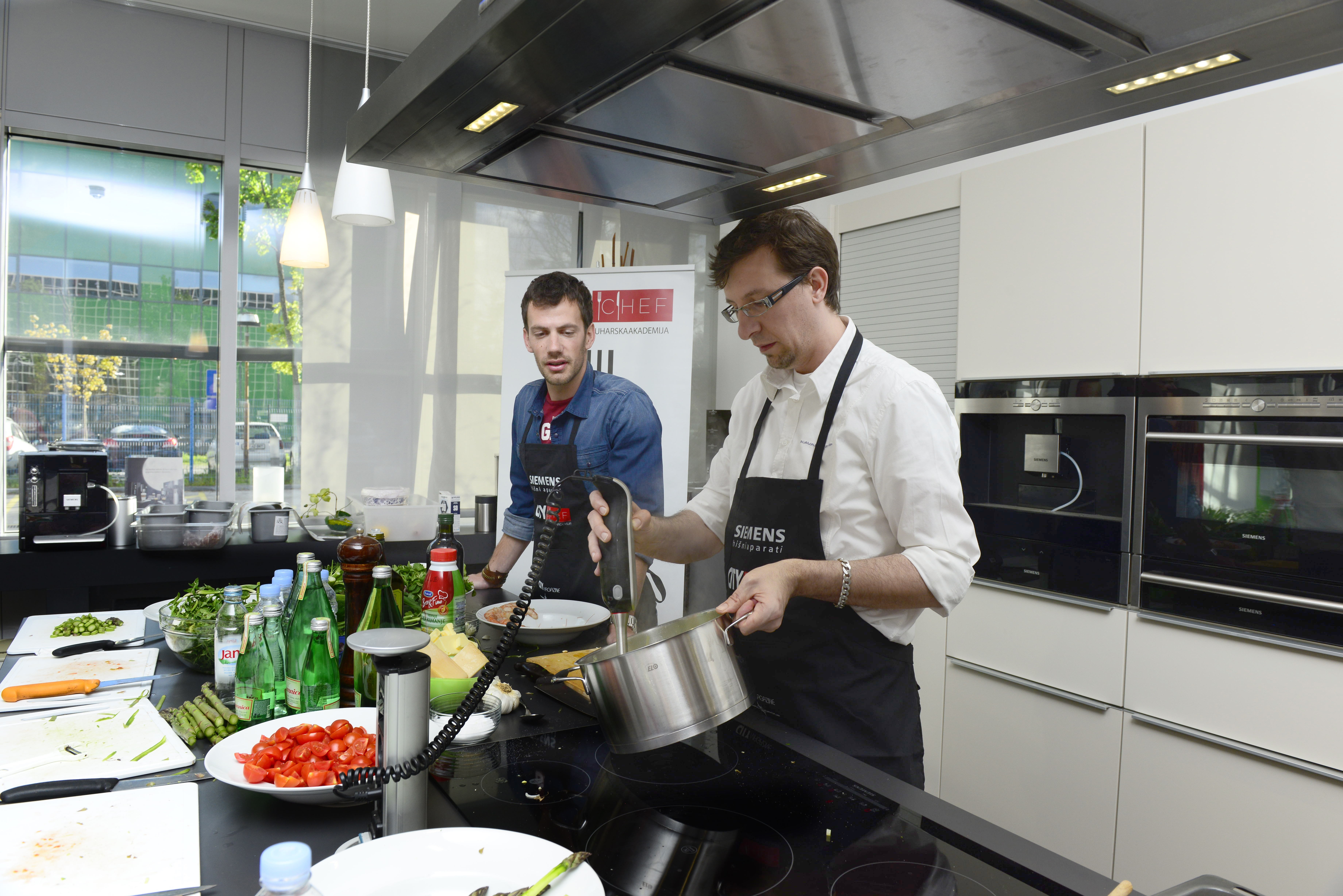 L'April Academy era giocosamente a tema primaverile. Abbiamo incluso i primi prodotti primaverili nei piatti e li abbiamo conditi come ai vecchi tempi. Sotto l'occhio vigile dello chef. Dragan Marjanoviča da Taverne di Kavala Abbiamo preparato asparagi con trničem e altre prelibatezze. Per iniziare, abbiamo preparato polpo in insalata con tarassaco, seguito da una crema di asparagi, poi risotto con asparagi, gamberi e trničem e fagottini di asparagi in pancetta croccante e insalata di tarassaco con patate e olio di zucca. Con il pasticcere Greg Rodet da Pasticcerie Lolita e abbiamo preparato un delizioso gelato agli asparagi e una deliziosa torta ai mirtilli secondo la ricetta di mia nonna. Durante l'accademia, ha anche presentato Cantina TiliaL'acqua ufficiale dell'evento era Fossa.