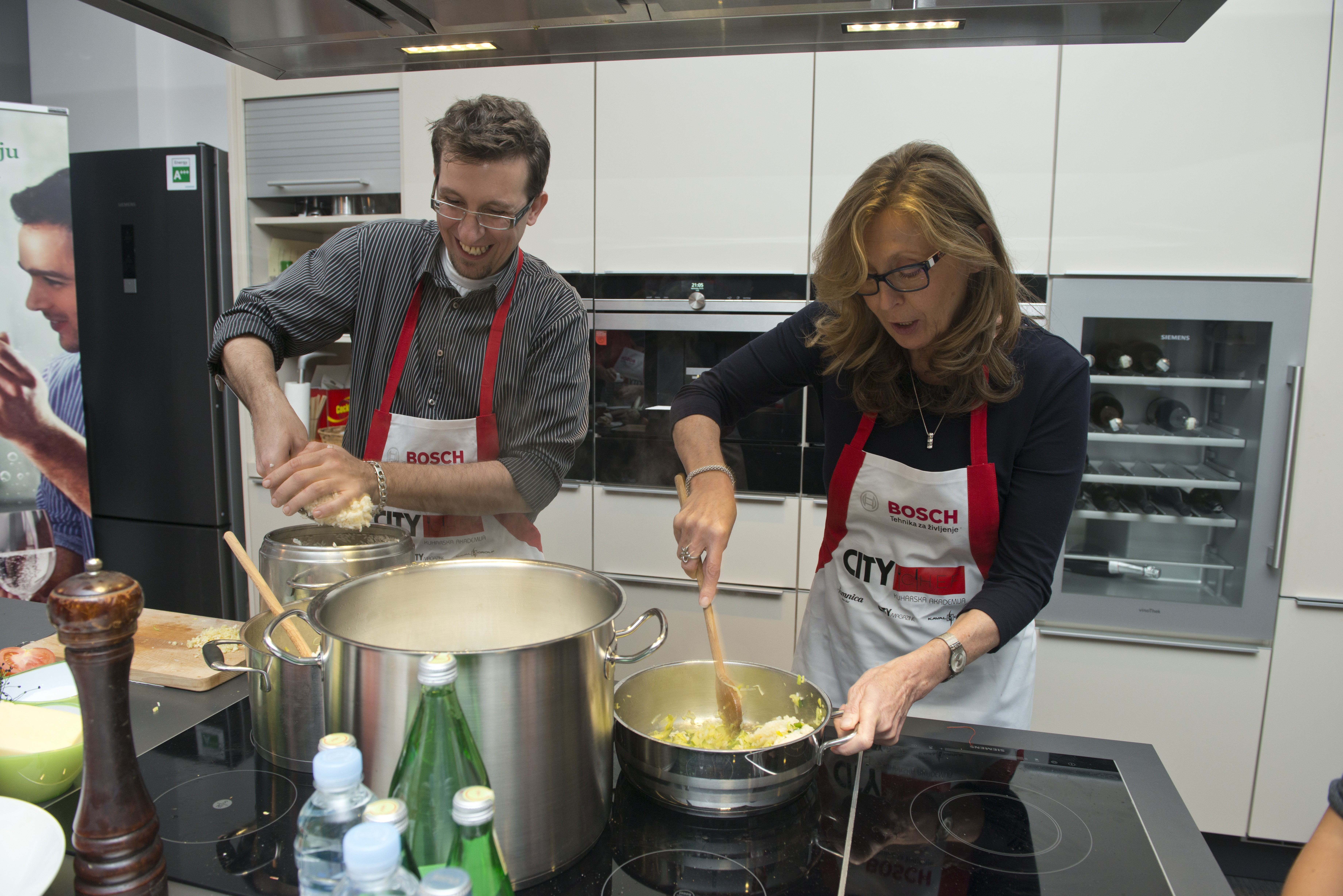 Na praznični Accademia di cucina CITY CHEF smo za predjed pripravili goveji carpaccio na rukoli, s parmezanom in granatnim jabolkom, za glavno jed žafranovo rižoto s popečenimi škampi in telečji biftek s tartufovim pirejem. Za sladico pa smo ustvarili Kavalove torte v lončkih, novoletne cookieje ter čokoladne smrekce na palčki. Jedi smo zaokrožili s peninami Martini. (Martini Rose, Martini Asti, Martini Prosecco). Uradna voda dogodka je bila Fossa.