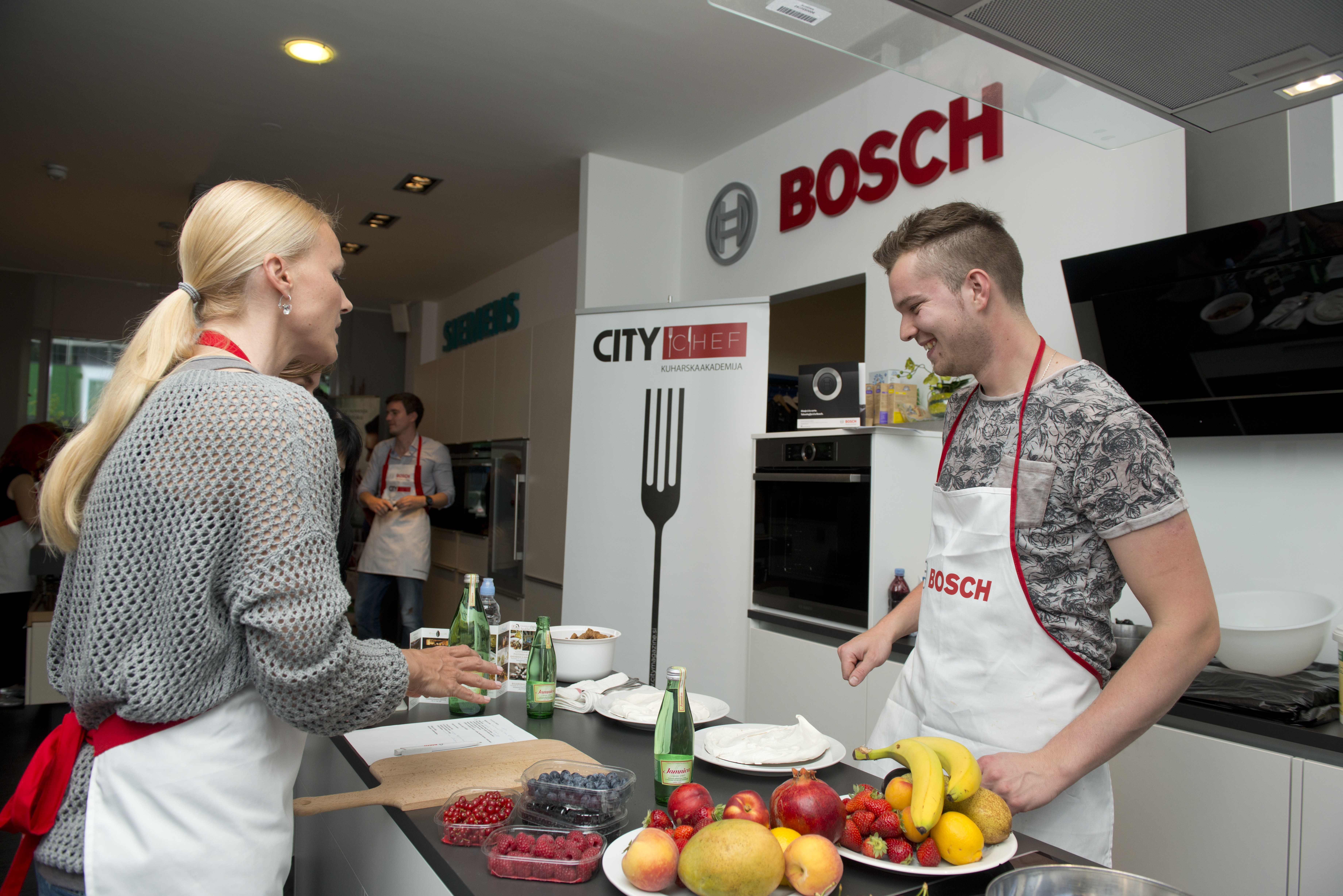 Glavne jedi je v prenovljenem salonu Bosch Siemens v Ljubljani pripravljal glavni kuhar Gostilnice in pizzerije Kaval, Dragan Marjanović, za sladke skrivnosti pa je poskrbel slaščičar iz Lolite, Greg Roda. Nepogrešljiv partner dobre hrane pa je vsekakor kozarec dobrega vina.