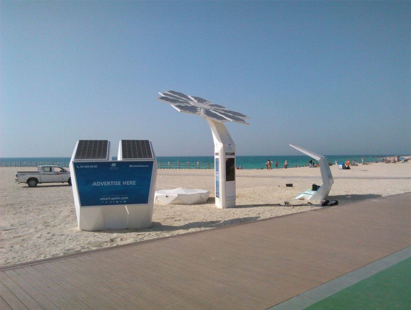 Smart Palm, ki energijo pridobiva prek solarnih panelov, poleg sence ponuja še kaj drugega. V Doubai, mestu poslovnih priložnosti, se razprostirajo vzdolž plaž in tako ponujajo podobo pametnih mest prihodnosti.