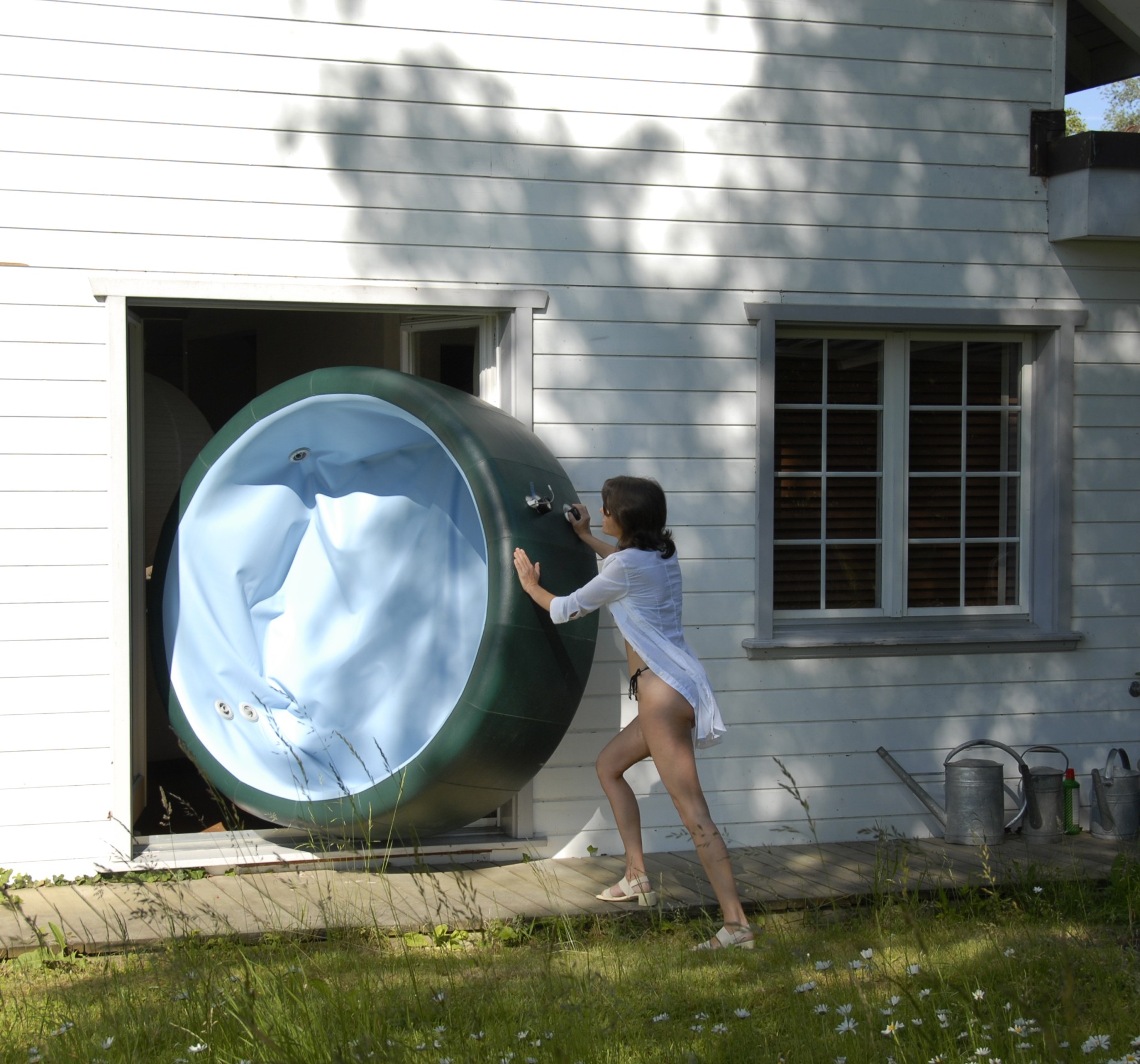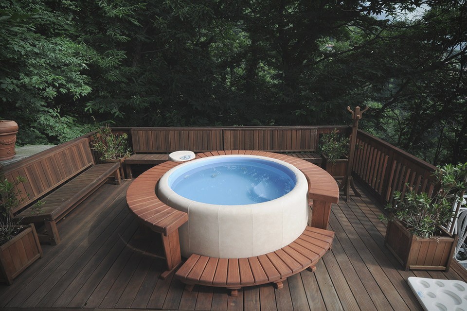 Vasche idromassaggio sono grandi e pesanti, quindi rimangono per lo più dove li abbiamo messi originariamente. vasca idromassaggio Softub è diverso perché aggira questo problema con un design leggero e possiamo spostarlo da un capo all'altro in tutta tranquillità. Colleghiamolo a elettricità, riempi d'acqua e puoi rilassarti.