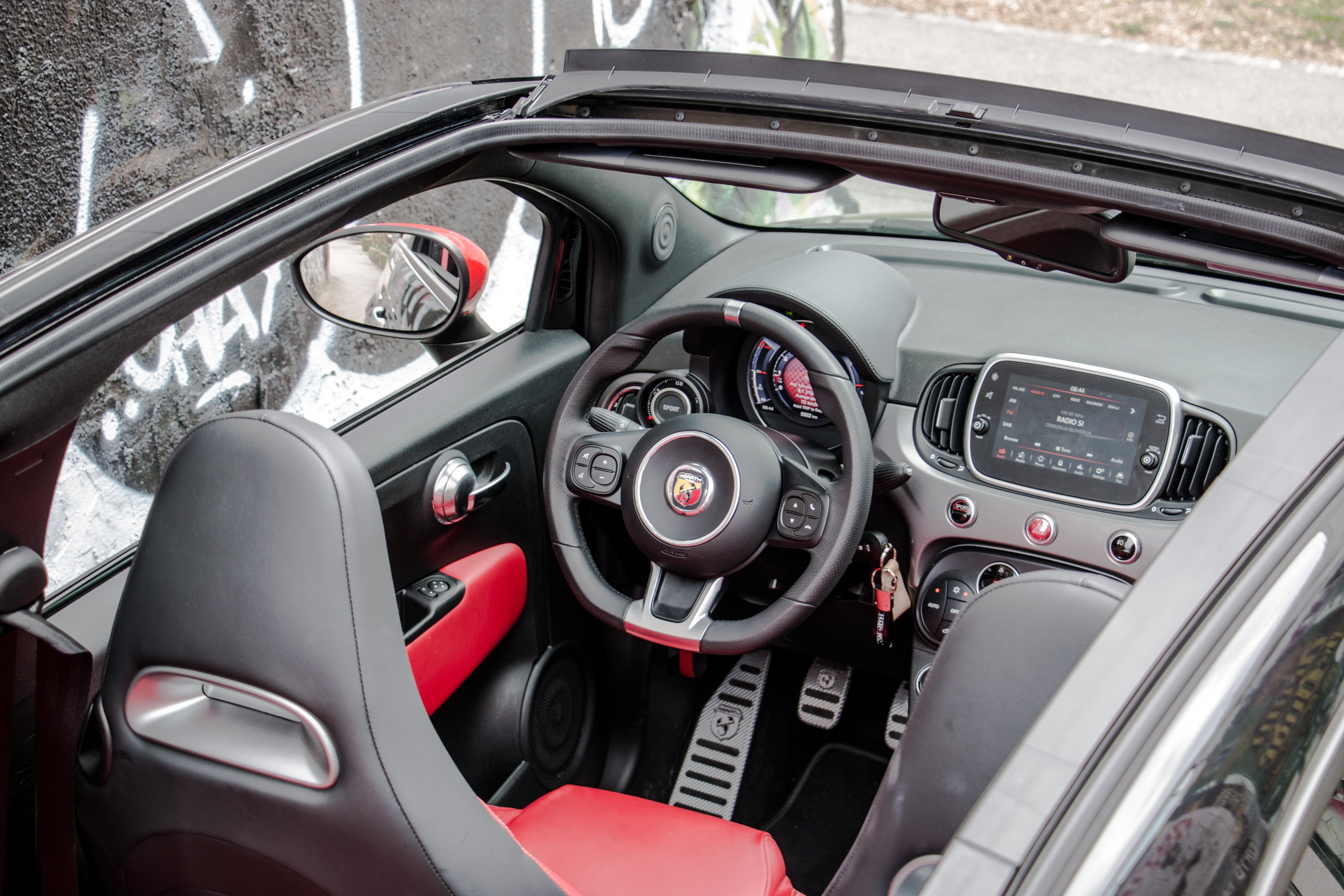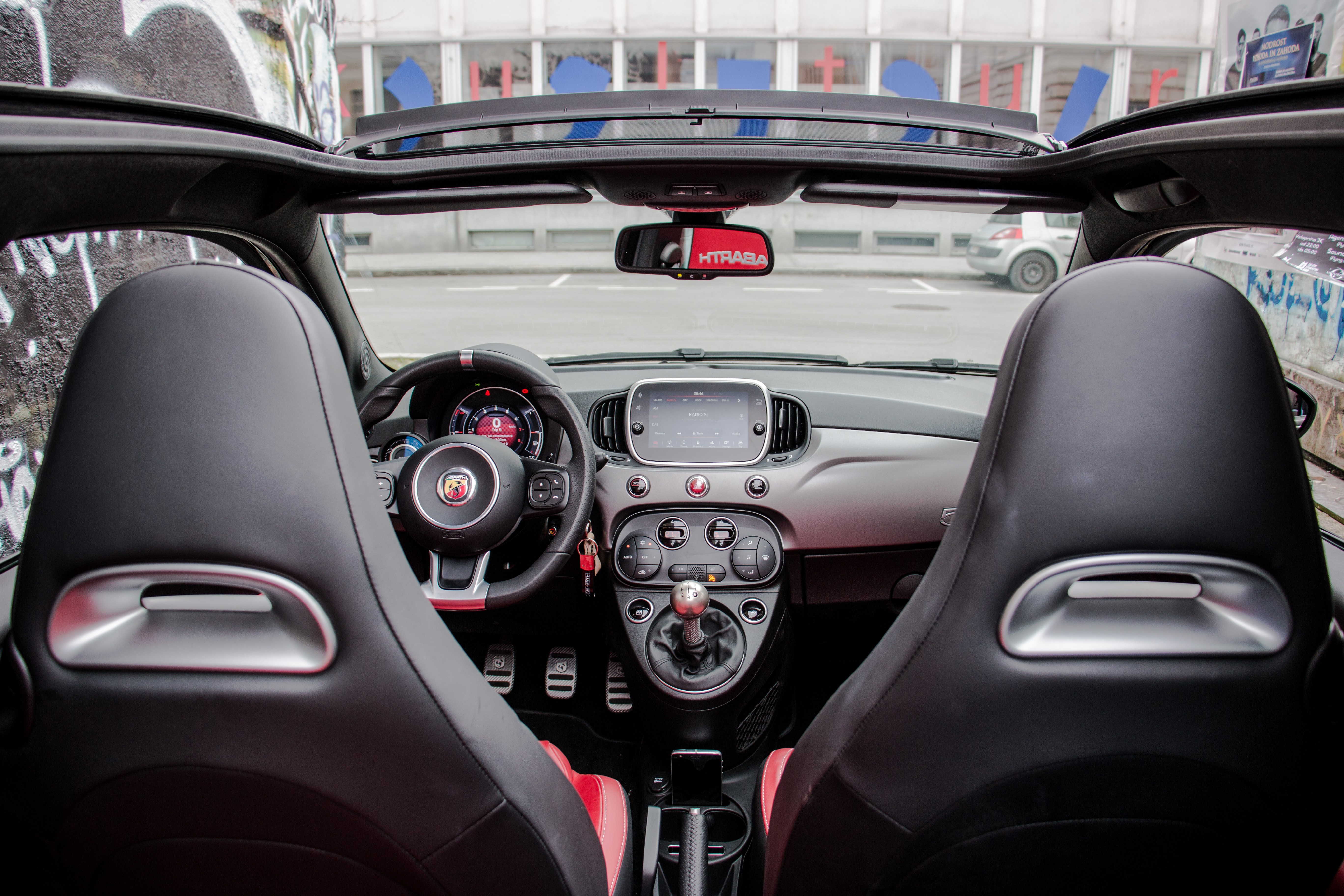 2つ目の理由は確かに イタリア製ロケットの防音対策内側に向かって 130km/h あまりにも多くのデシベルとあらゆる種類の騒音が車内に入り込んでくる。その理由の一部はソフトトップにあるが、主な問題はエンジン音だ。その騒音があまりにも大きいため、ラジオを聴くことは事実上不可能で、楽しみとは程遠い行為となる。 アバルト595 他にもいくつか欠点があり、座席は平均的なヨーロッパ人の臀部には小さすぎるし、側面のサポートもほとんどない。