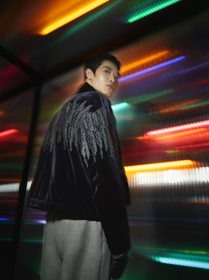 ファッションコレクション "ポップな気分」は、エンポリオ・アルマーニの40周年を祝うだけでなく、 80年代エレガンスとアンドロジニーが融合した服。ゆったりとしたシルエットに、様々なグラフィックモチーフ、ディスコ調の色合い、ニットのディテール、クラシックなジャケット、テーラードスーツなどがあしらわれています。