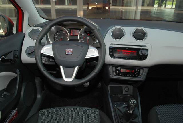 Med stvari, ki so nas pri testni ibizi najbolj prepričale, zagotovo sodi samodejna klimatska naprava, sicer del dodatne opreme. Ljubitelji glasbe boste veseli kar dveh vtičnic: AUX IN in USB. Med vožnjo si pri upravljanju z radiom lahko pomagamo z obvolanskimi kontrolami. Edino, kar nas je pri radiu zmotilo, je odsotnost številčnih tipk za shranjevanje radijskih postaj. Nekaj težav pa smo imeli tudi s povezovanjem telefona z Bluetooth napeljavo – dopuščamo seveda možnost, da smo se je slabo lotili. Kar se tiče odlagalnih površin so te v ibizi bolj skopo odmerjene, predvsem tiste na sredinski konzoli – vsaj za naš okus. Smo bili pa zato bolj navdušeni nad enostavno, a učinkovito rešitvijo okroglih šob zračnikov, ki so bili odličen kontrast svetlim delom armature. Ko smo že pri pohvalah, gredo te nevtralni legi ibize v ovinkih, četudi avtomobil ni imel vgrajenega sistema za nadzor stabilnosti ESP. Odlični so tudi športni sedeži z ustreznim bočnim oprijemom. Koristna funkcija so meglenke, ki so pri nizkih hitrostih ob zavijanju osvetljevale »mrtvi kot«. Malce manj pa smo bili navdušeni nad dejstvom, da je bil predal pred sovoznikom neosvetljen. Neosvetljena so bila tudi kozmetična ogledalca v senčnikih. Malček nepraktična je tudi postavitev nekaterih stikal, in sicer tistih za gretje zadnjega stekla, aktivacijo centralnega zaklepanja in vklop vseh štirih smernikov. Omenjena stikala so inženirji postavili pred prestavno ročico, če gledamo v smeri vožnje.