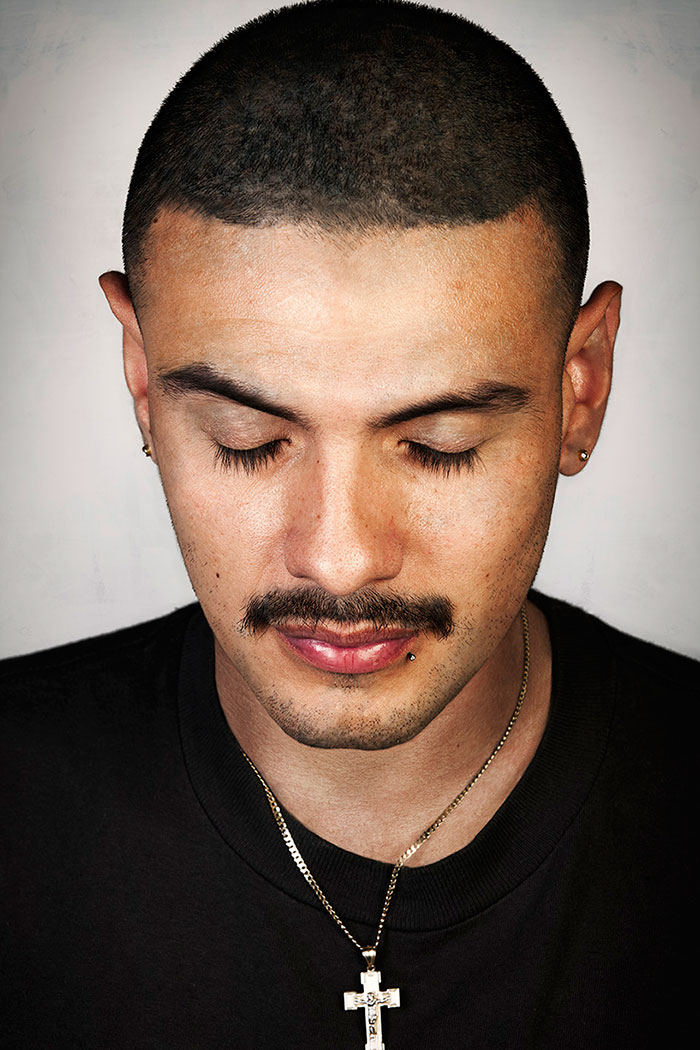 Deep Skin プロジェクトのコンセプトはシンプルでした。バートンが写真を撮りました 深く入れ墨をしたギャング そしてそれらにタトゥーを入れる デジタル的に削除されました 比較のために両方のポートレートを提供します。
