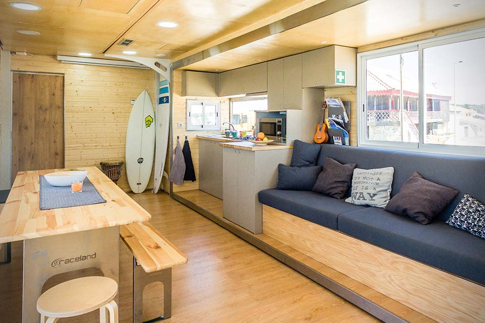 トラック サーフ ホテルは 2 か所にあります。 ポルトガル そしてで モロッコ。地上階で見つけました キッチン, リビングルーム と バスルーム、上層階に位置していますが、 ベッドルーム5室:2段ベッドのお部屋4部屋とダブルベッドの個室1部屋。大きな窓と屋外テラスからは、周囲の素晴らしい景色を眺めることができます。