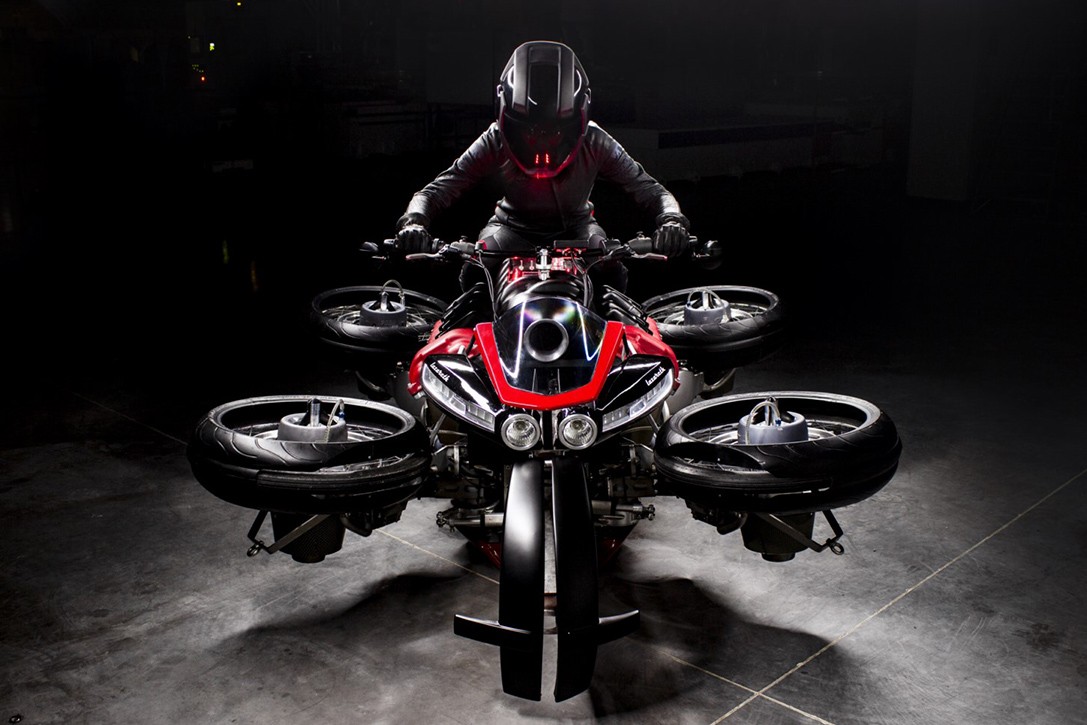 ラザレス ラ・モト・ヴォランテ 496 世界初のバイクで、 クアッドコプター。はい、その通りです。ドローンになるバイクです!デザインは紛れもなくラザレスのものですが、バイクを動かすテクノロジーはまったく異なるものです。基本的な推進剤は 電気モーター、 と 100キロメートル 自律性があり、飛行に参加する ジェットキャットタービンは、実際にはすべての自転車に搭載されている部品です。これらは外側に動き、水平位置になり、バイクは 10分 飛行、またはホバリングします。タービンの総出力は 1,300馬力灯油を使って生産する 2,800ニュートン 浮力。ボタンを押すだけでタービンが元の位置に戻り、バイクは再び走行可能になります。彼らはただ 5 LMV 496ユニット、1ユニットあたり約 50万ユーロ.