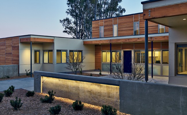 レディ・メイタム・ステイシー建築事務所が設計したこの非営利の高齢者向け住宅は、太陽熱温水器と太陽光発電パネルによって内部暖房されており、同様の建物が通常使用するエネルギーの半分しか消費しない。