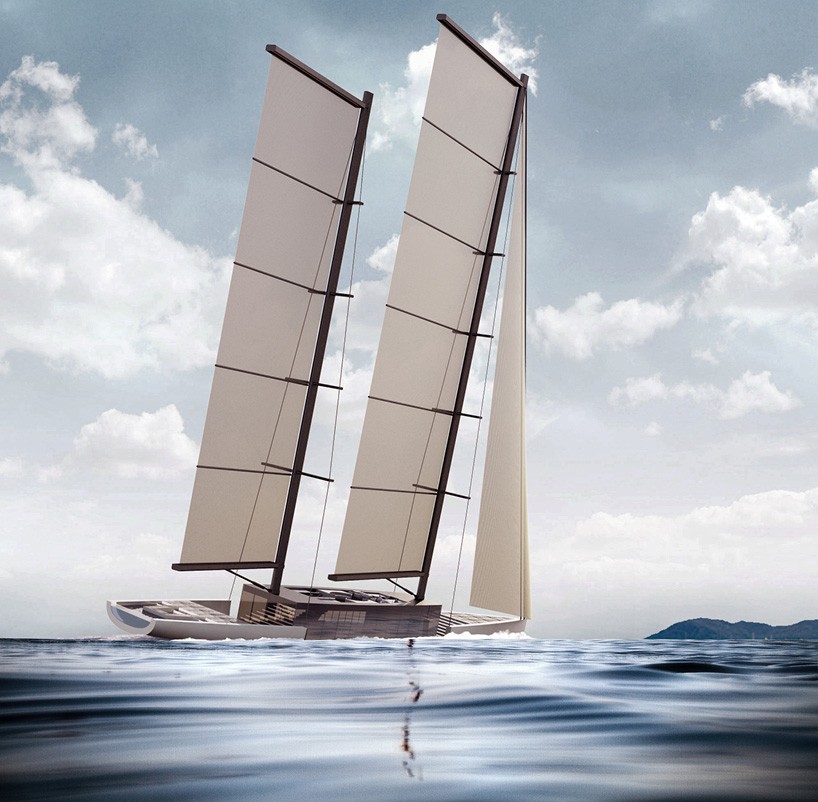 塩は 未来的な帆船建築家とヨットデザイナーによって描かれた ルジャカ・デソーテル帆船は縦方向に引っ張られている 55メートル空に伸びる最も高いマストと同じ高さです。 3つのダイニングルーム、5つのキャビン 乗組員用の寝室も多数あります。詳細は写真で公開します。