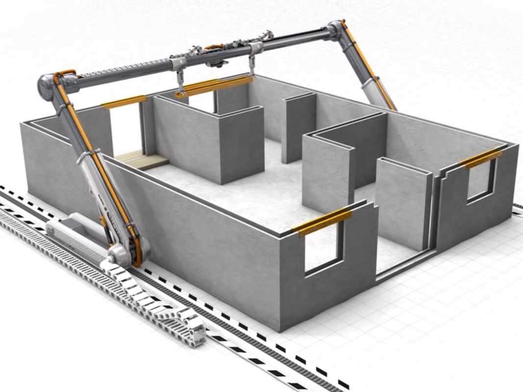 金属製の支持フレームと窓やドアの枠を挿入するときにも追加作業が必要で、手作業またはクレーンを使用して行うことができます。残りのビルド プロセスはほぼ完全に自動化されています。