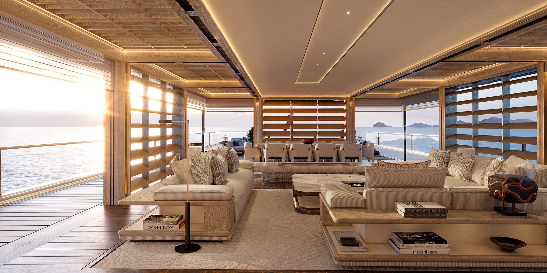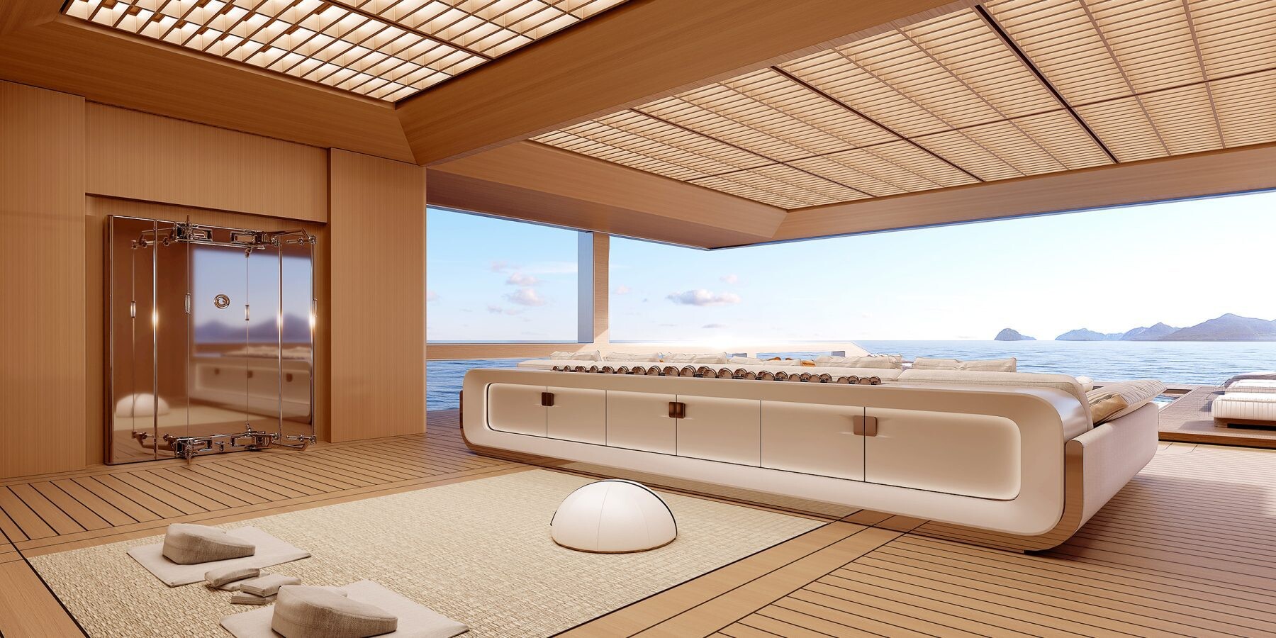 天井が 10 メートルあるビーチ クラブは、魔法が起こる場所です。 AWARE のデザインは、スペースを最適化することに重点を置いています。これは、広大なスペースを派手に表現したものです。しかし、それはサイズだけではありません。それは、あらゆるインチを大切にすることです。ヨットは船上のどこからでも海の景色を眺めることができます。そう、トイレからも。なぜだめですか?