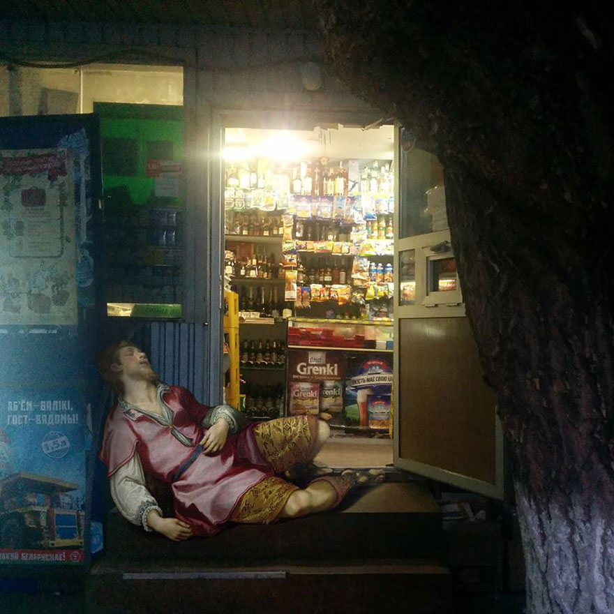 神々の日常 との一連の写真です 古典的な絵画の登場人物を現代の環境に設定。ある芸術家 アレクセイ・コンダコフ これらは画家のセザール・ファン・エバーディンゲンの絵画に触発され、彼は Photoshop を使用してキャラクターを元の環境から店舗、バス、地下鉄、その他の都市環境に移動させました。