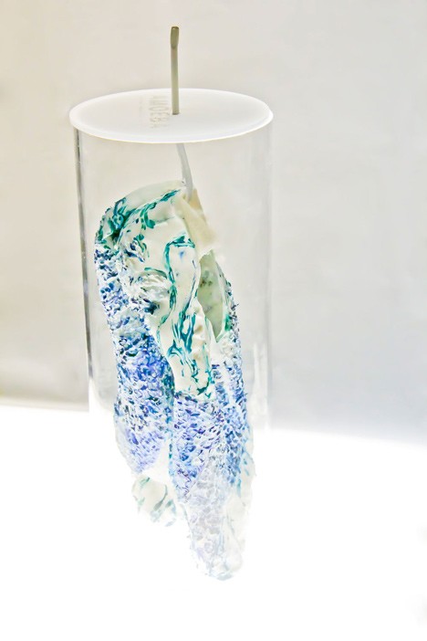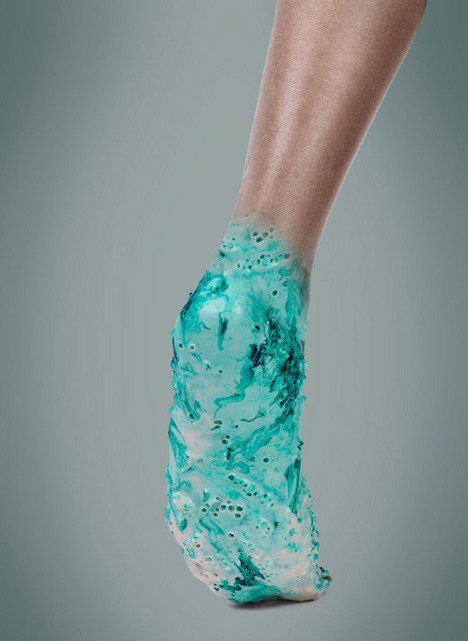 スニーカーは圧力に適応するだけでなく、回復する能力も備えています。走った後、プロトセルはエネルギーを失うため、スニーカーをプロトセル液の入った容器に入れて「餌を与える」必要があり、これにより生物の生命力が維持されます。液体は任意の色に染色することもできるため、スニーカーの修復中に色も付けられます。
