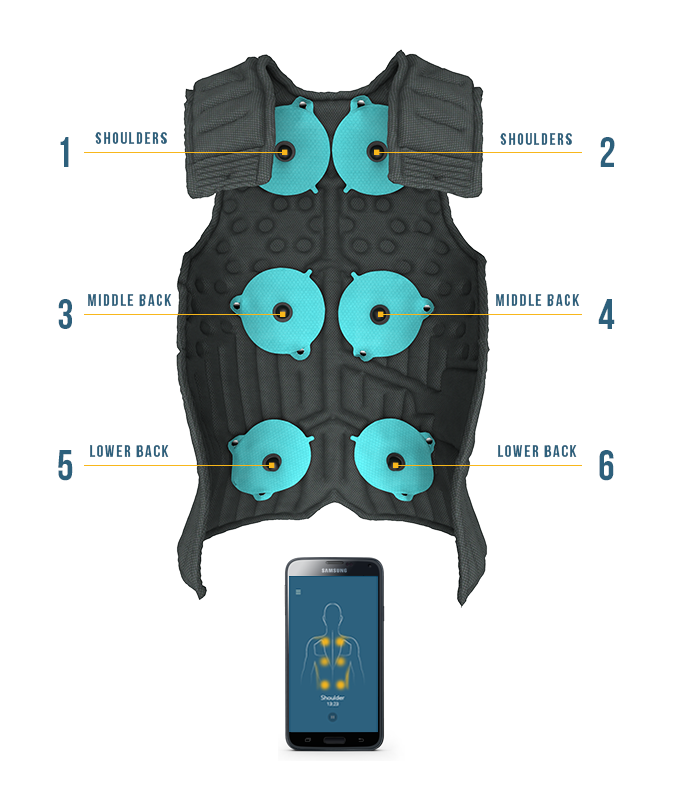 Poleg masaže ocenjuje držo vašega telesa in ukrepa, ko zazna, da se grdo držite. Baterija zagotavlja triurno avtonomijo, napolni pa se v dveh. Masažno majico upravljamo スマートフォンで, prednaročite pa jo lahko na platformi za množično financiranje Kickstarter za (preračunanih) 115ユーロ. Na voljo je tudi nekoliko cenejši ベスト.