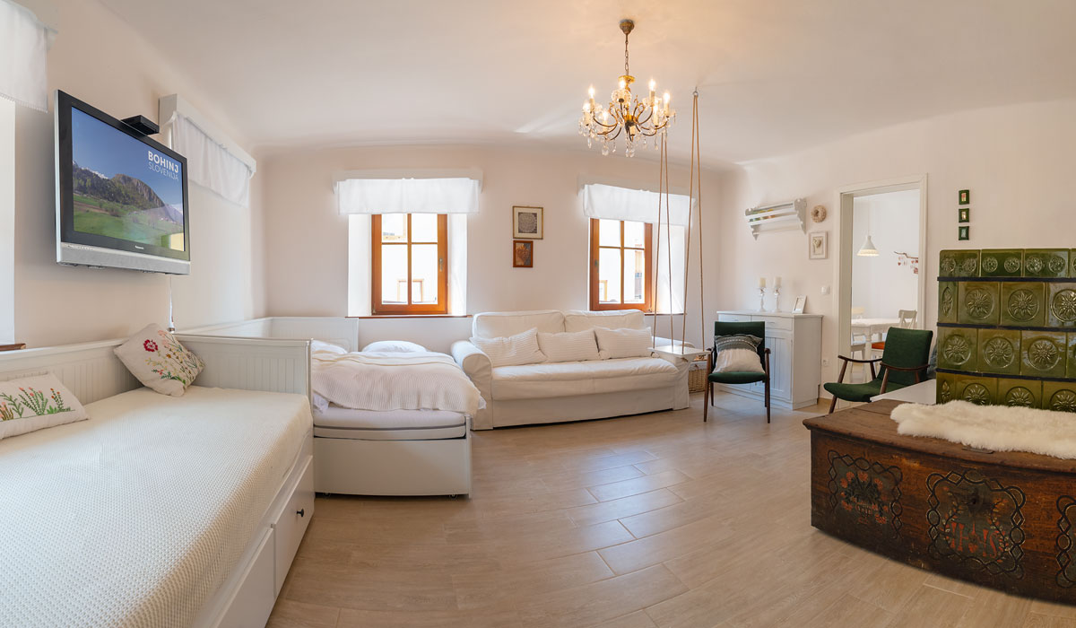 V sklopu nastanitve sta dva lično opremljena apartmaja in studio, ki združujejo tradicionalno arhitekturo in skandinavsko izčiščenost. V vseh najdete dobro opremljene kuhinjske enote, udobne dnevne prostore in zakonske postelje.